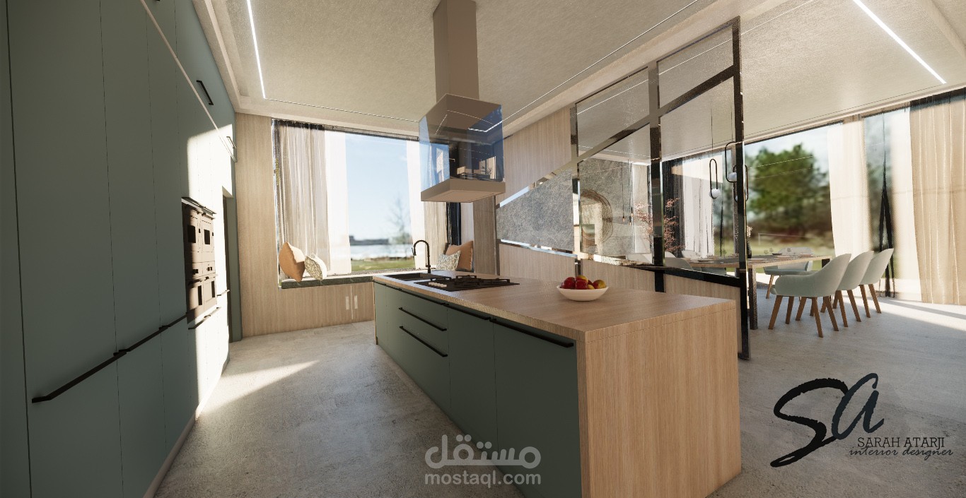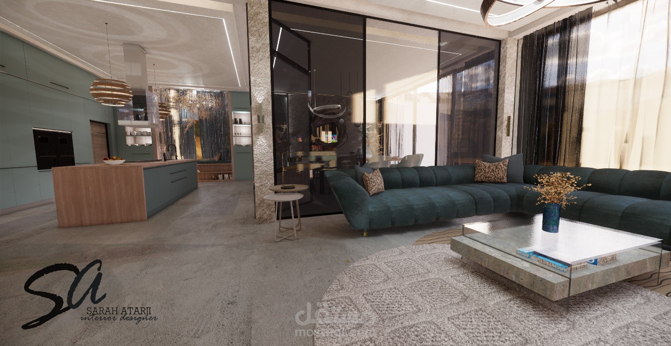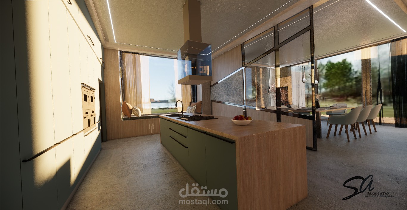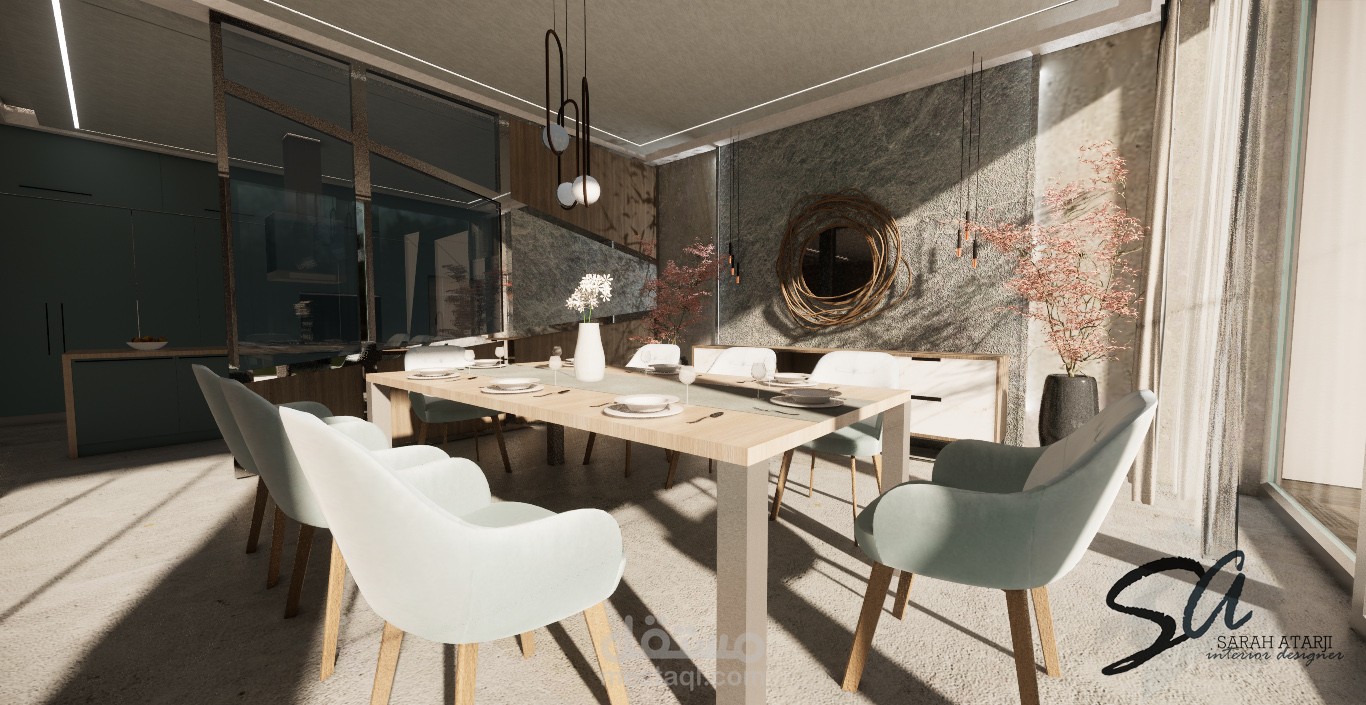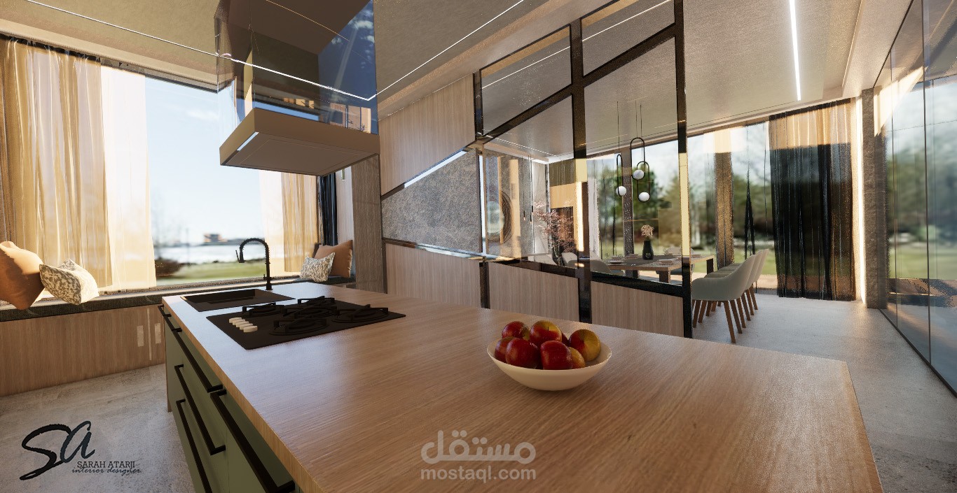 تصميم لمنطقة طعام ومطبخ مفتوح