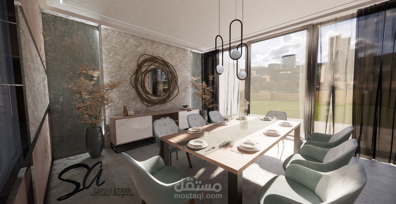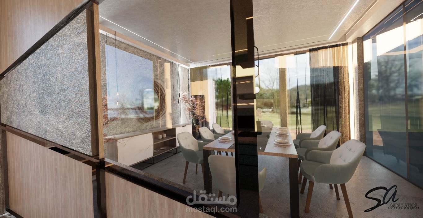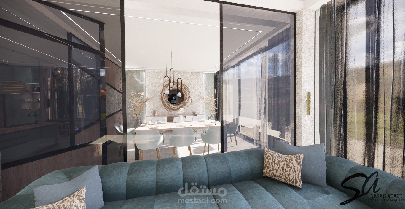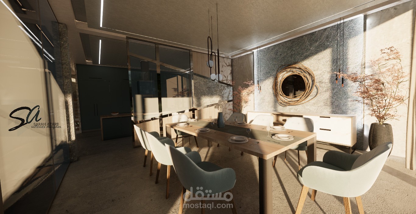 تصميم لمنطقة طعام ومطبخ مفتوح