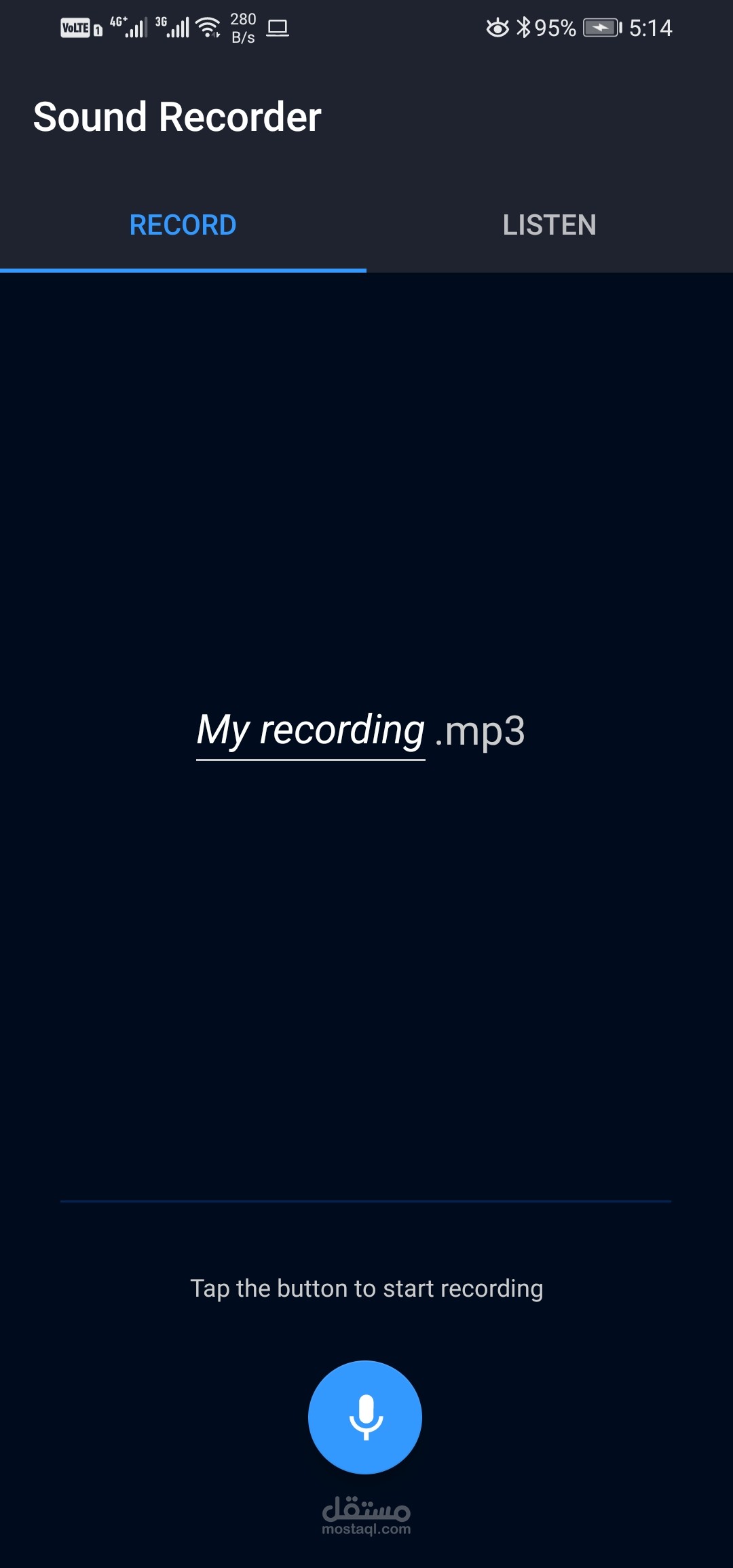 -تطبيق لتسجيل الصوت و تخزين التسجيل على ذاكرة الهاتف و الاستماع له ف التطبيق.