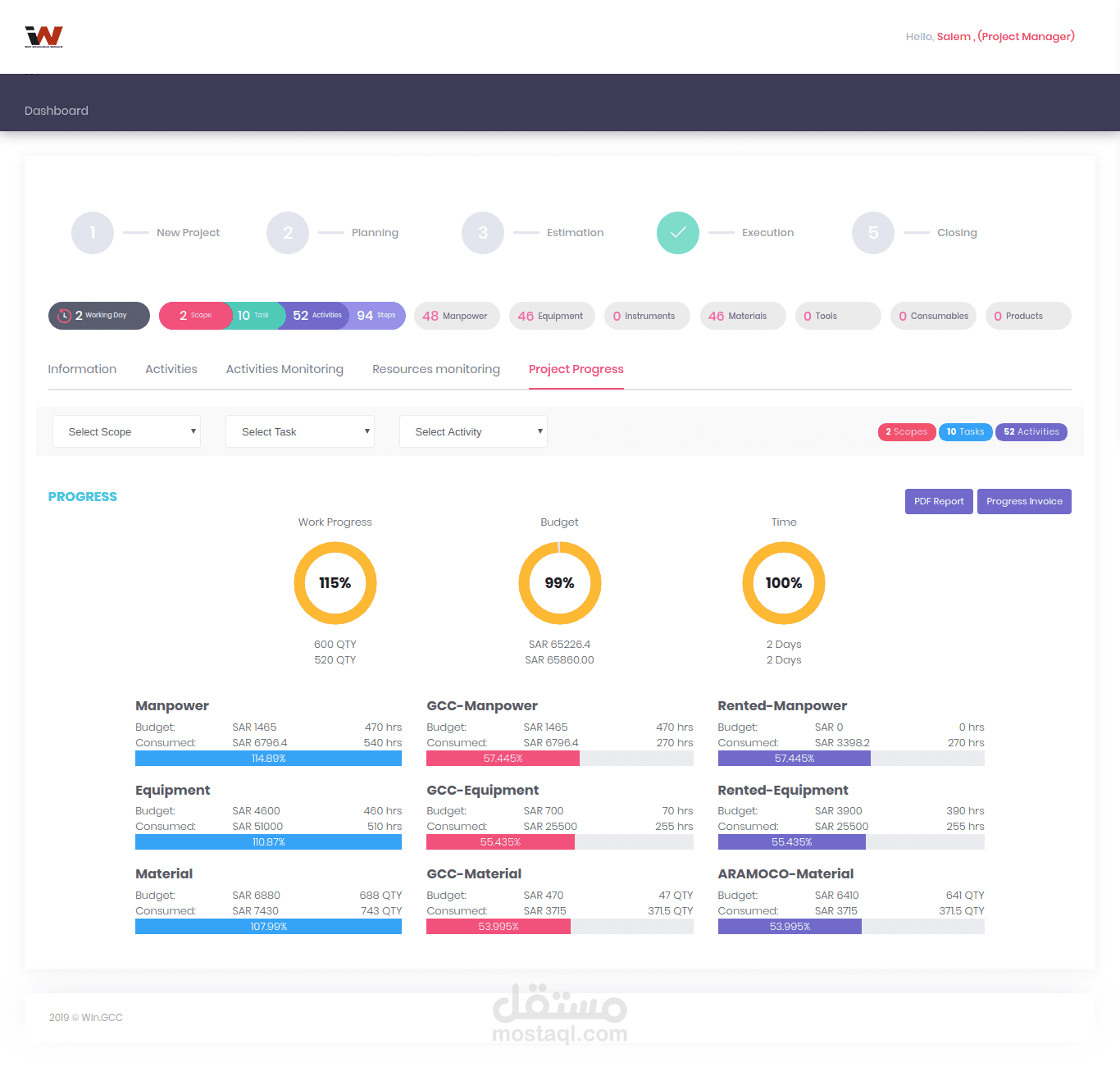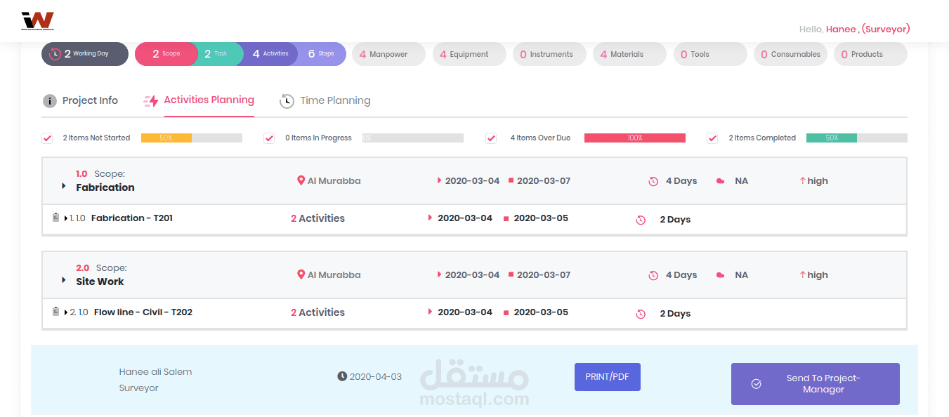 تطبيق يختص بادارة اعمال الهندسة و متابعة سريان المشاريع و تحدد الاستهلاك والادوات الامكانيات المطلوبة و العمالة اللازمة