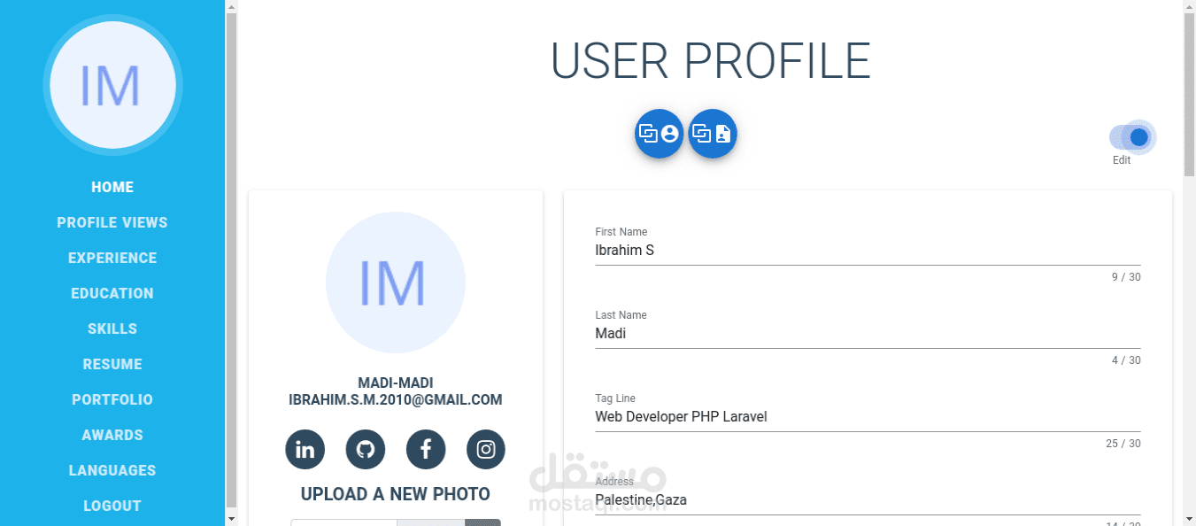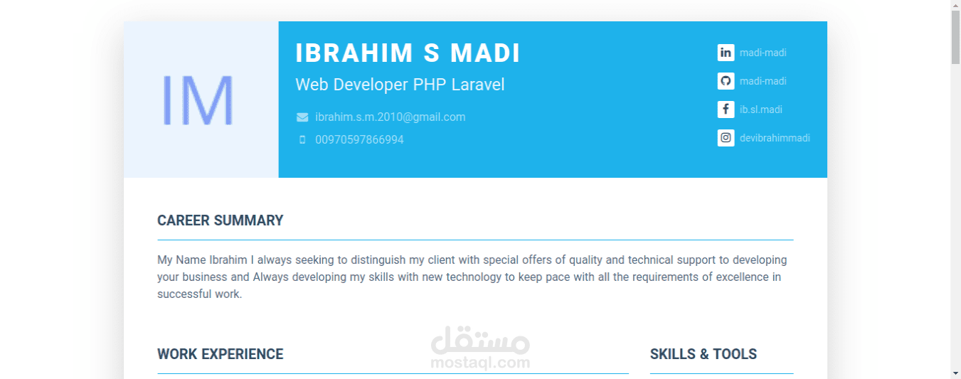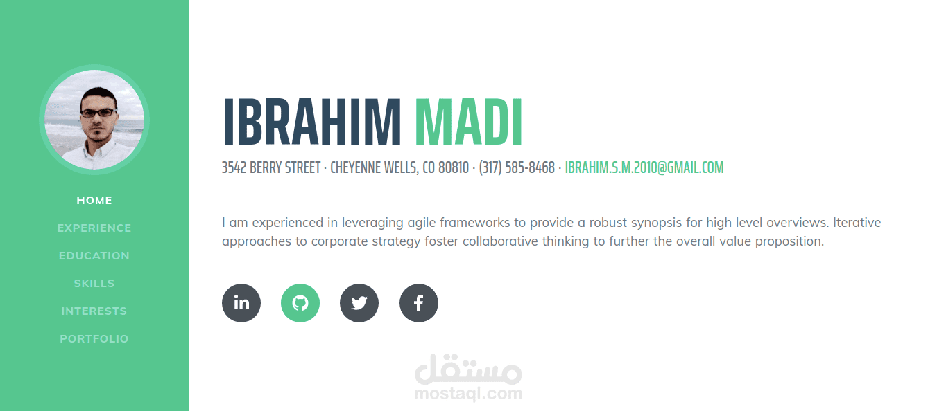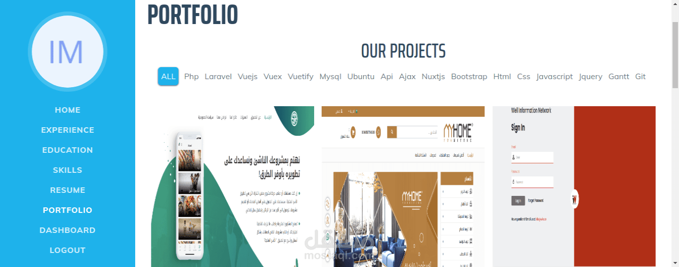 موقع يتيح المستخدم انشاء سيرة ذاتية و مشاركة اعماله مع العملاء.