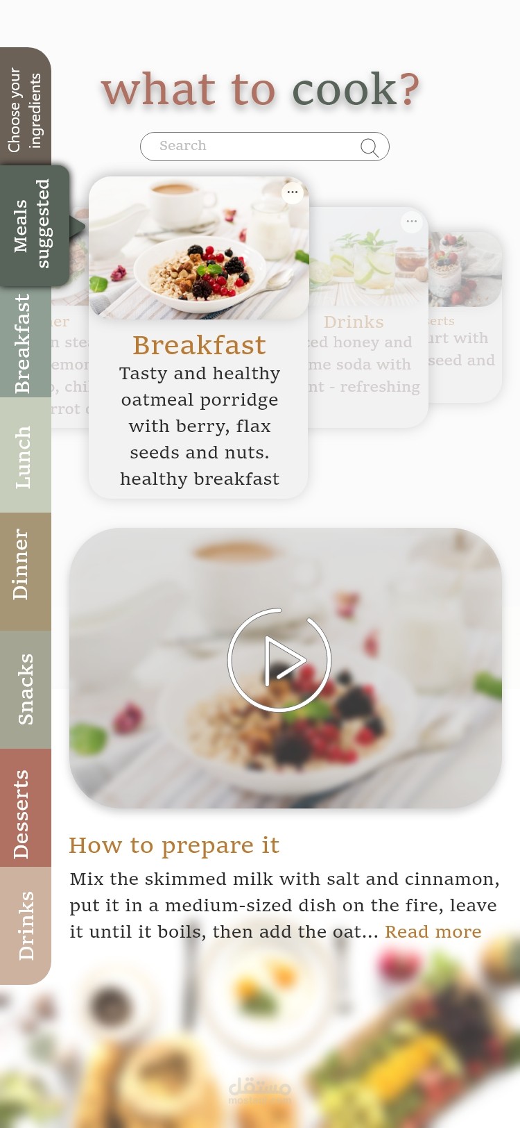 Main Page - Mobile App, Cooking