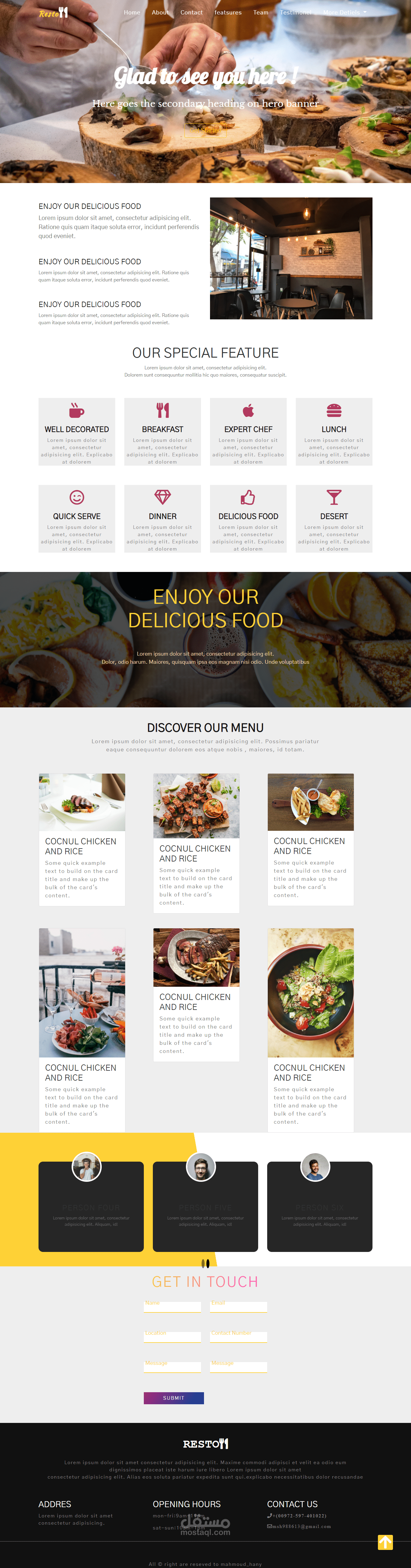 تصميم الصفحة الرئيسية لمطعم للوجبات السريعة.
