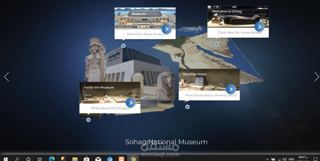 هذا الموقع صمم خصيصا لمتحف فى محافظة سوهاج بمصر حيث ان الموقع يدعم اللغتين العربية والانجليزية ويوجد به متجر الكترونى تعرض به المنتجات المراد بيعها والموقع ريسبونسف بشكل كامل على جميع الاجهزة وامن بدرجة كبيرة وقد تم تنفيذه فى 15 يوم
