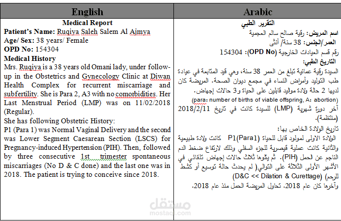 يتم قراءة التقرير بشكل عام لمعرفة المحتوى ومن ثم ترجمته وفقا للمصطلحات الطبية المدروسة