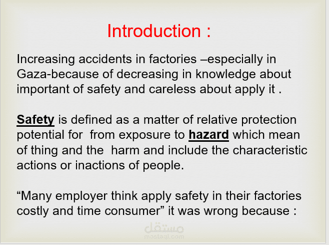 في هذا المشروع تم دراسة تطبيق إجراءات السلامة على خط إنتاج شبسي في مصانع العودة في مدينة غزة _ فلسطين، ومن خلال دراستنا لهذا الخط تم ملاحظة تطبيق هذه الإجراءات بكل سلاسة ودقة.