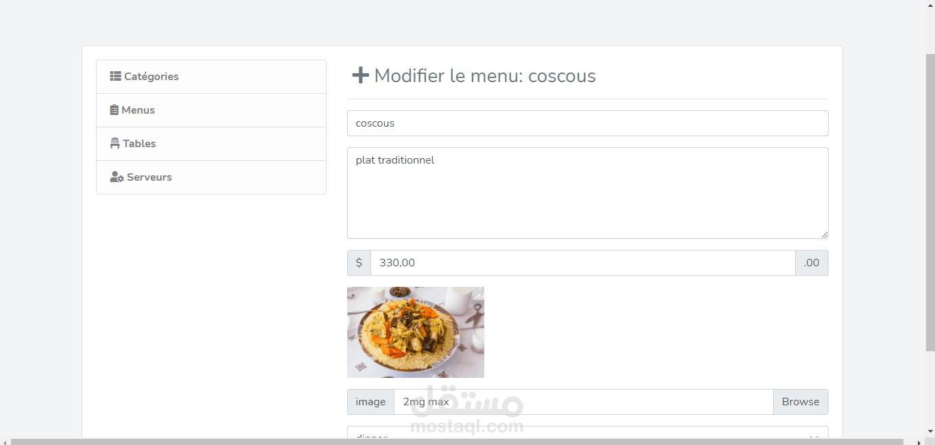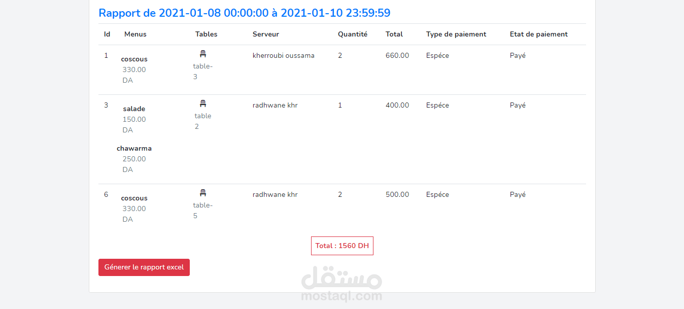 المشروع عبارة عن موقع لادارة مطعم من ناحية الطلبات و المبيعات و المدخول الى اخره