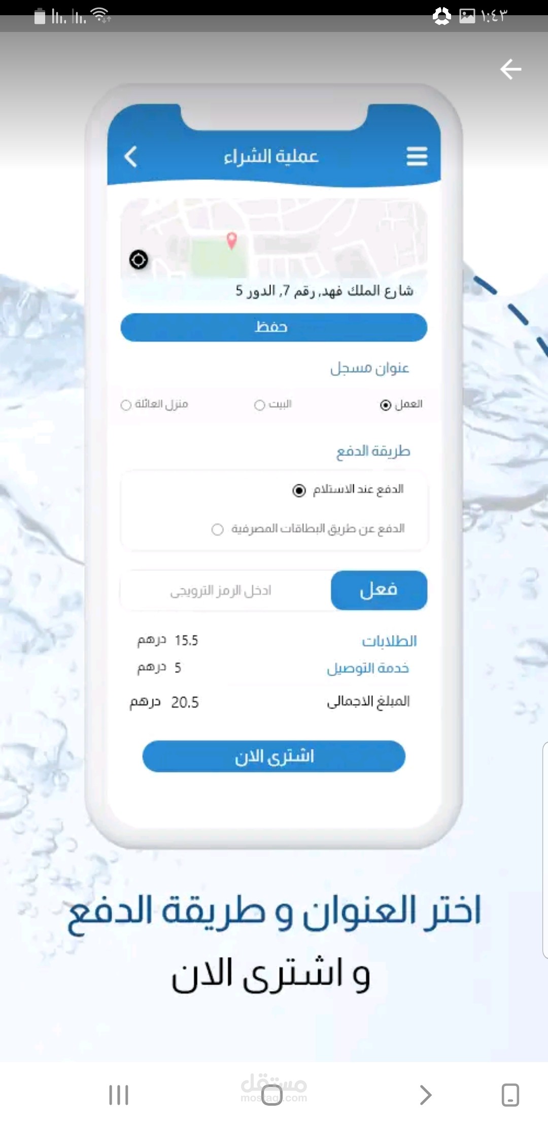 يشتهر التطبيق بان يضمن جميع المركات وشركات المياه والمشروبات في دول الخليج