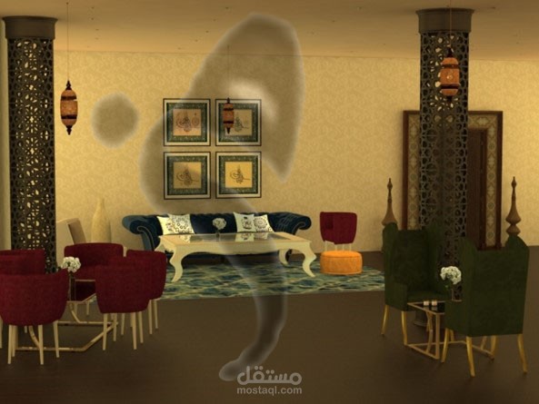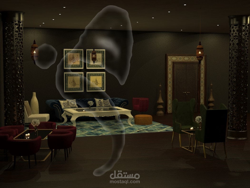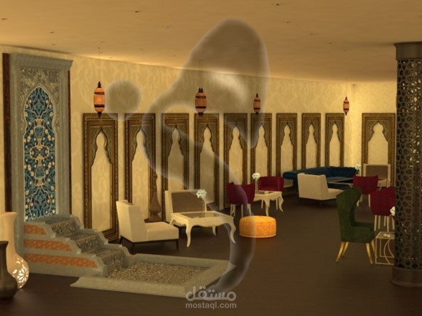 تم تصميم هذا المقهى بطابع اسلامي حديث.