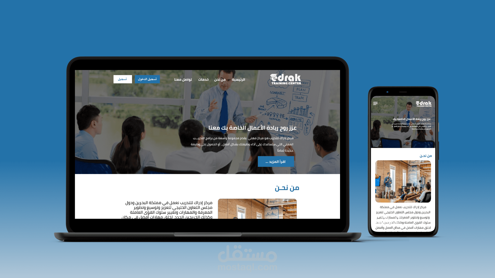 واجهات من تصميم موقع ويب لمنصة تدريبية