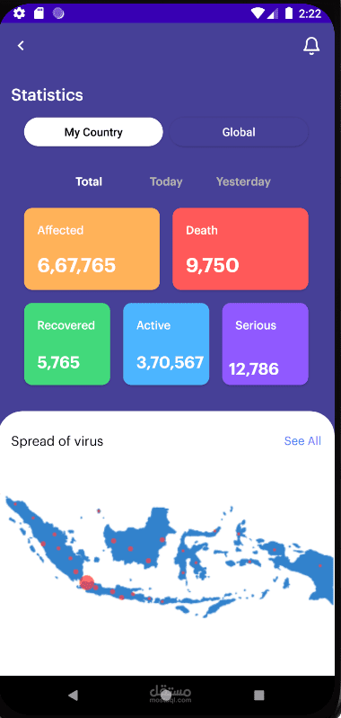 يقوم بمتابعه احصأيات الاصابات حول العالم