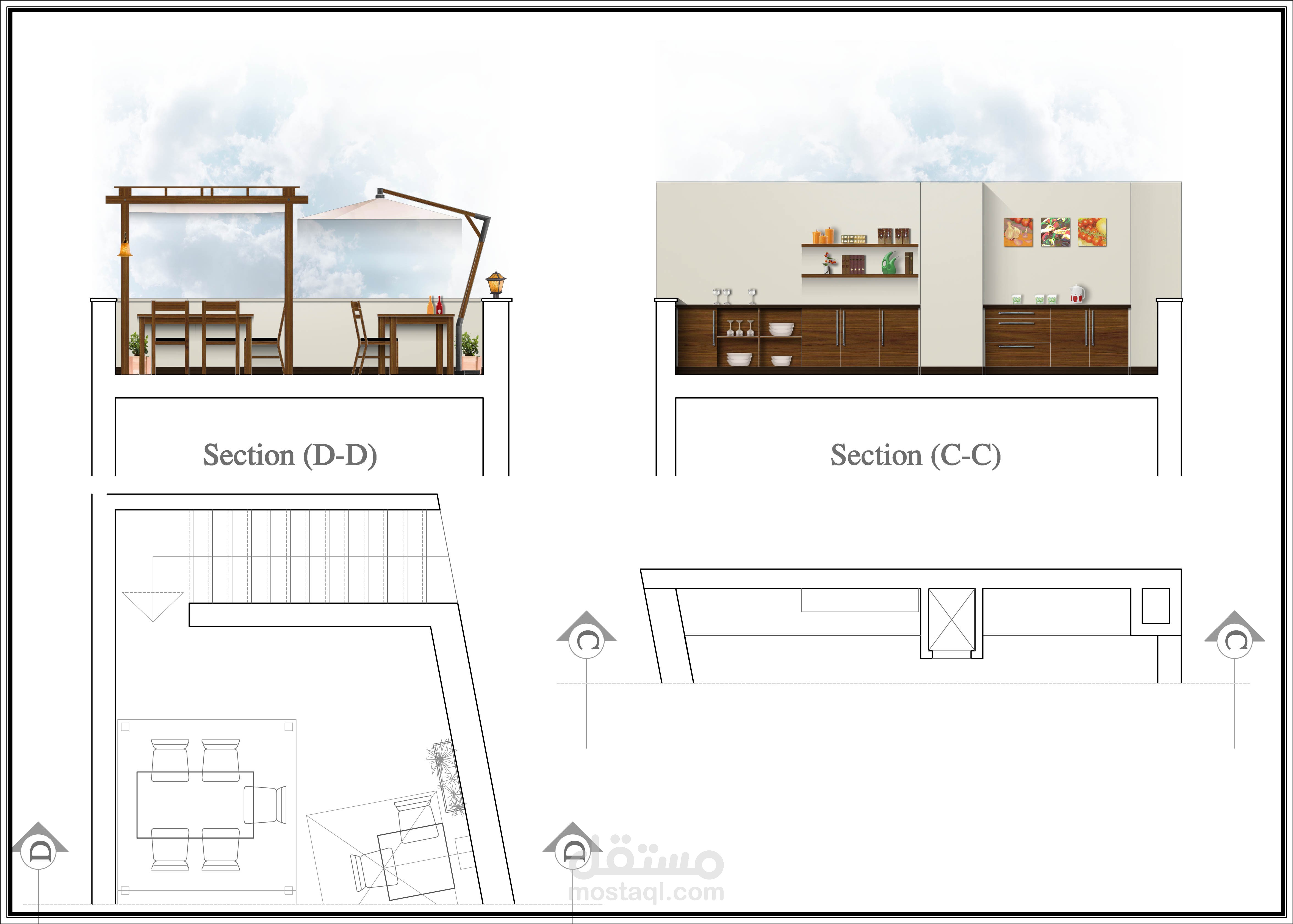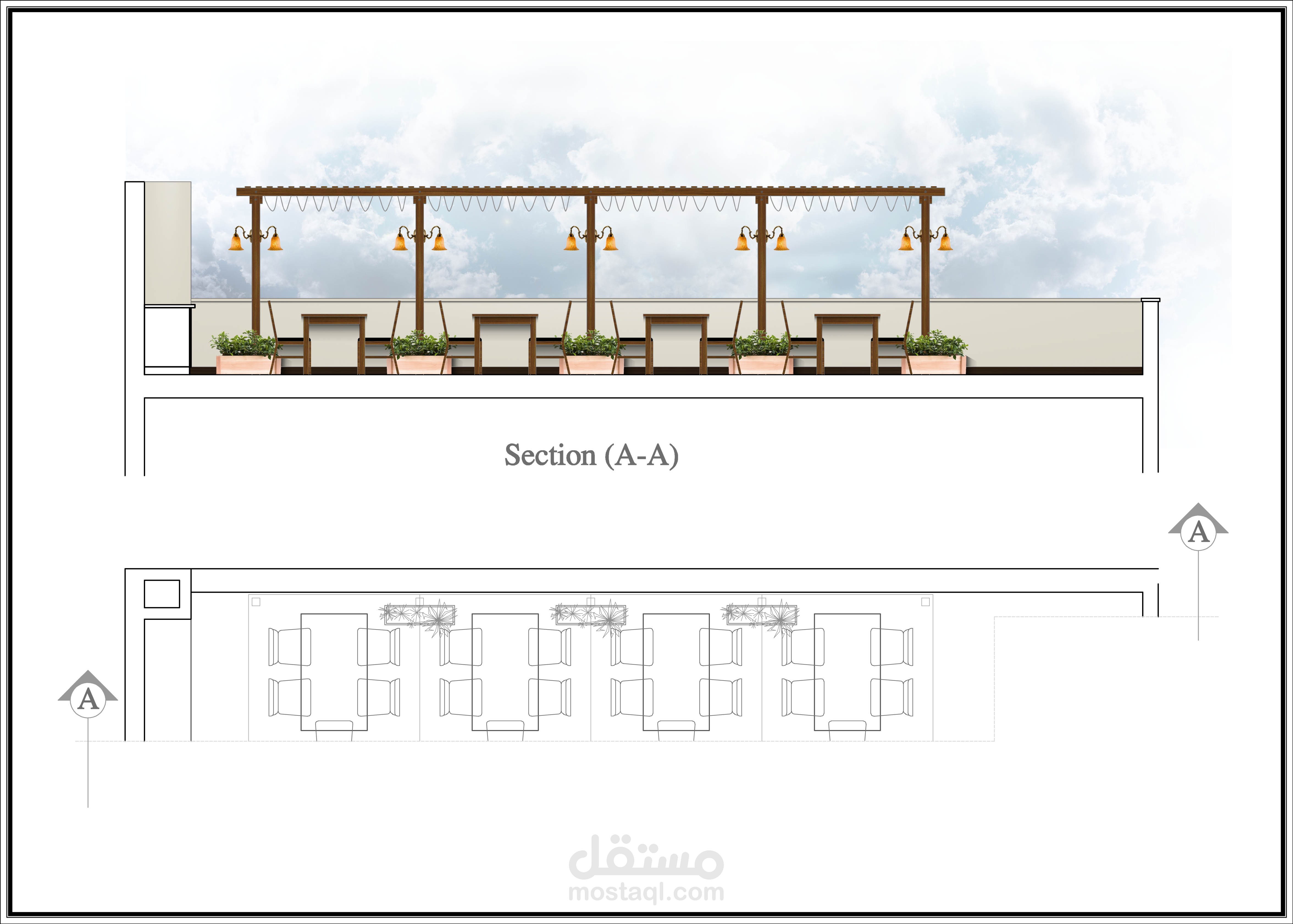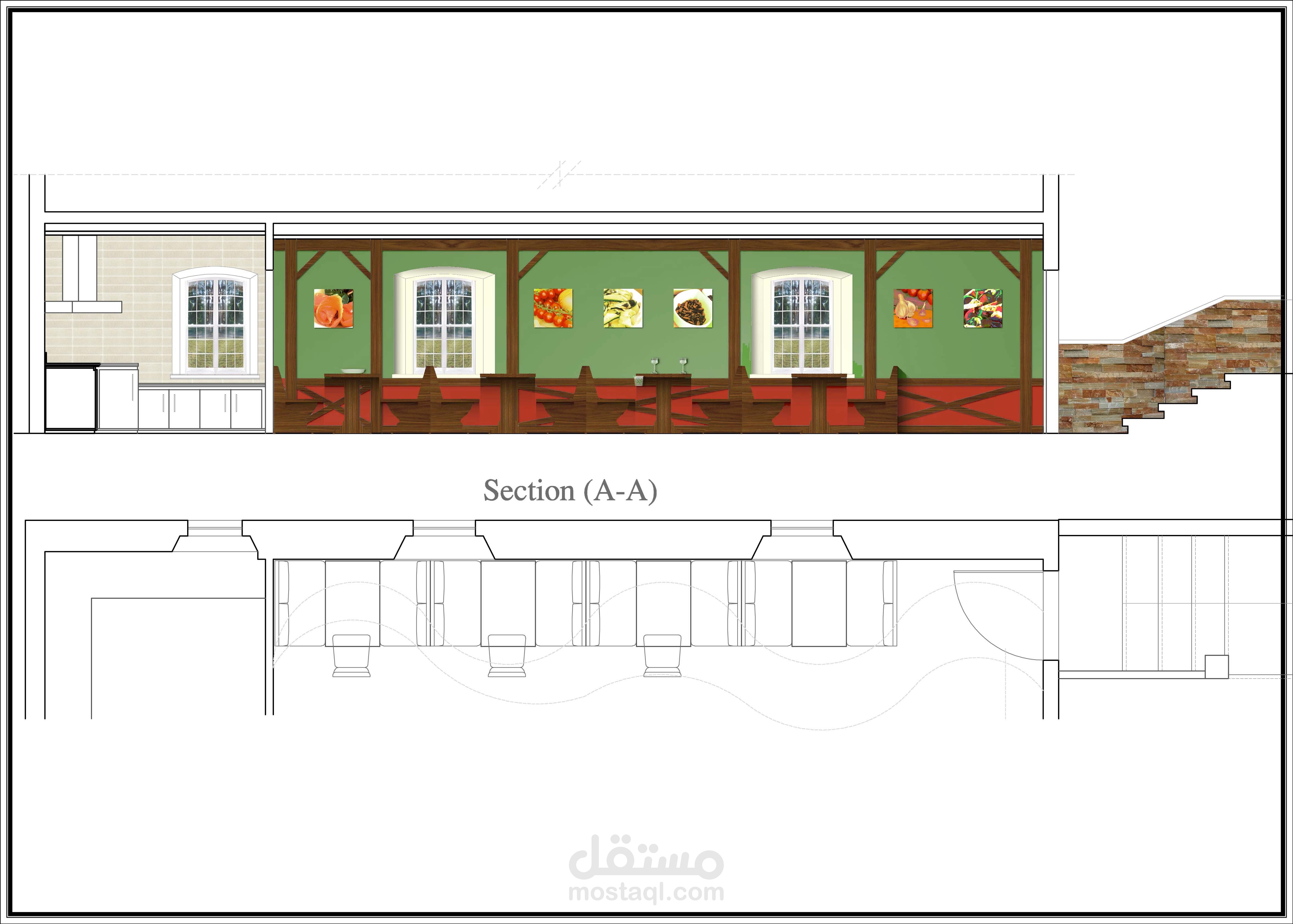 تصميم داخلى لمطعم مأكولات ايطالية و كافيه من طابقين