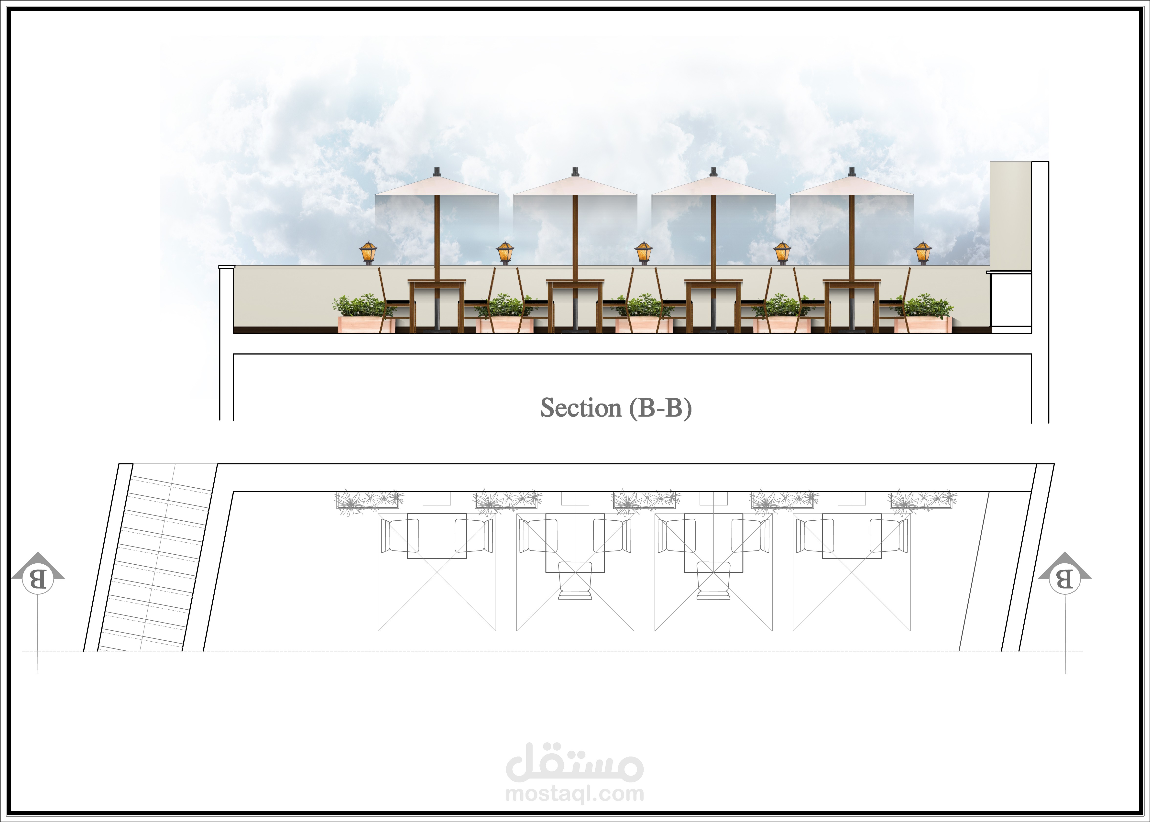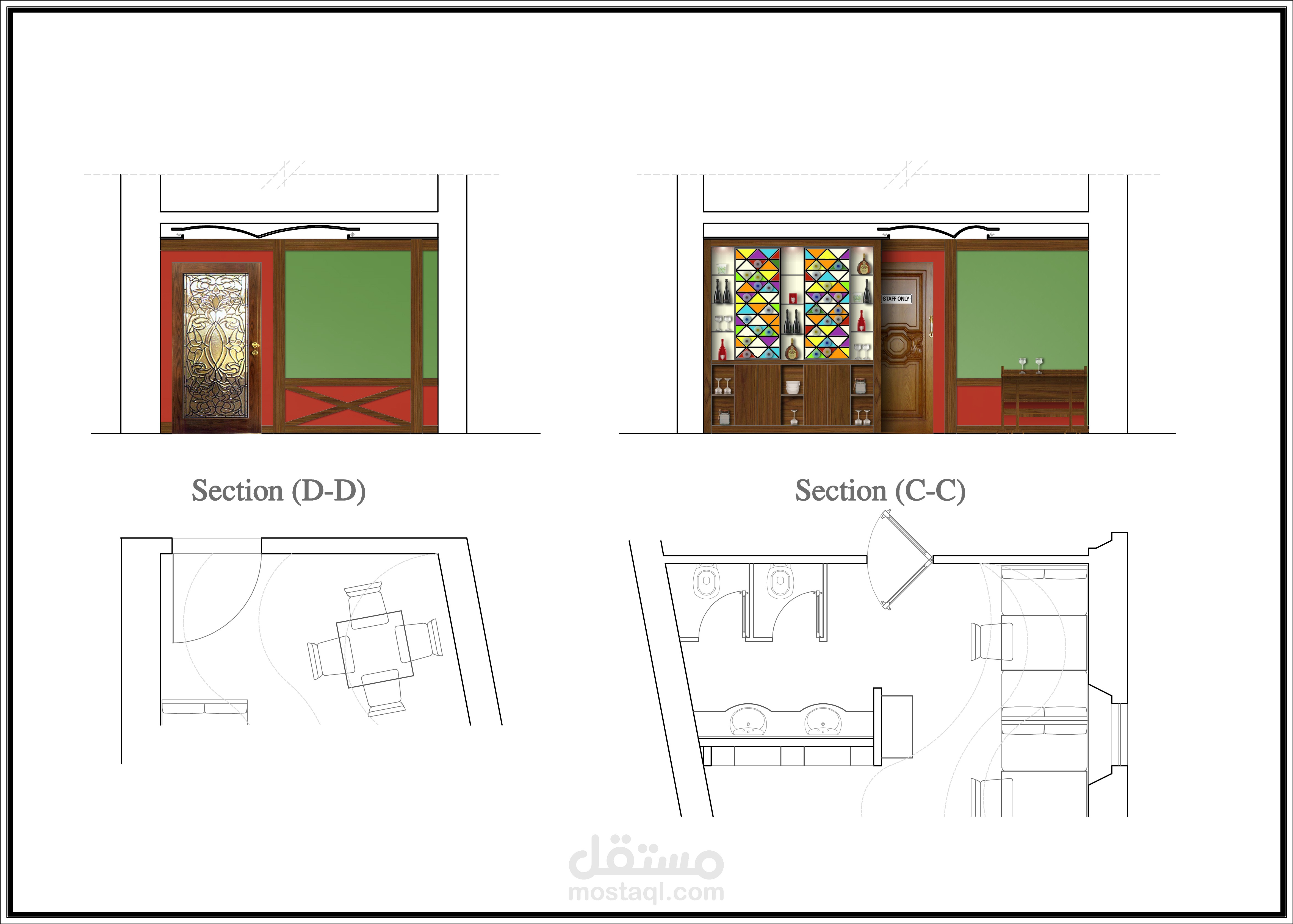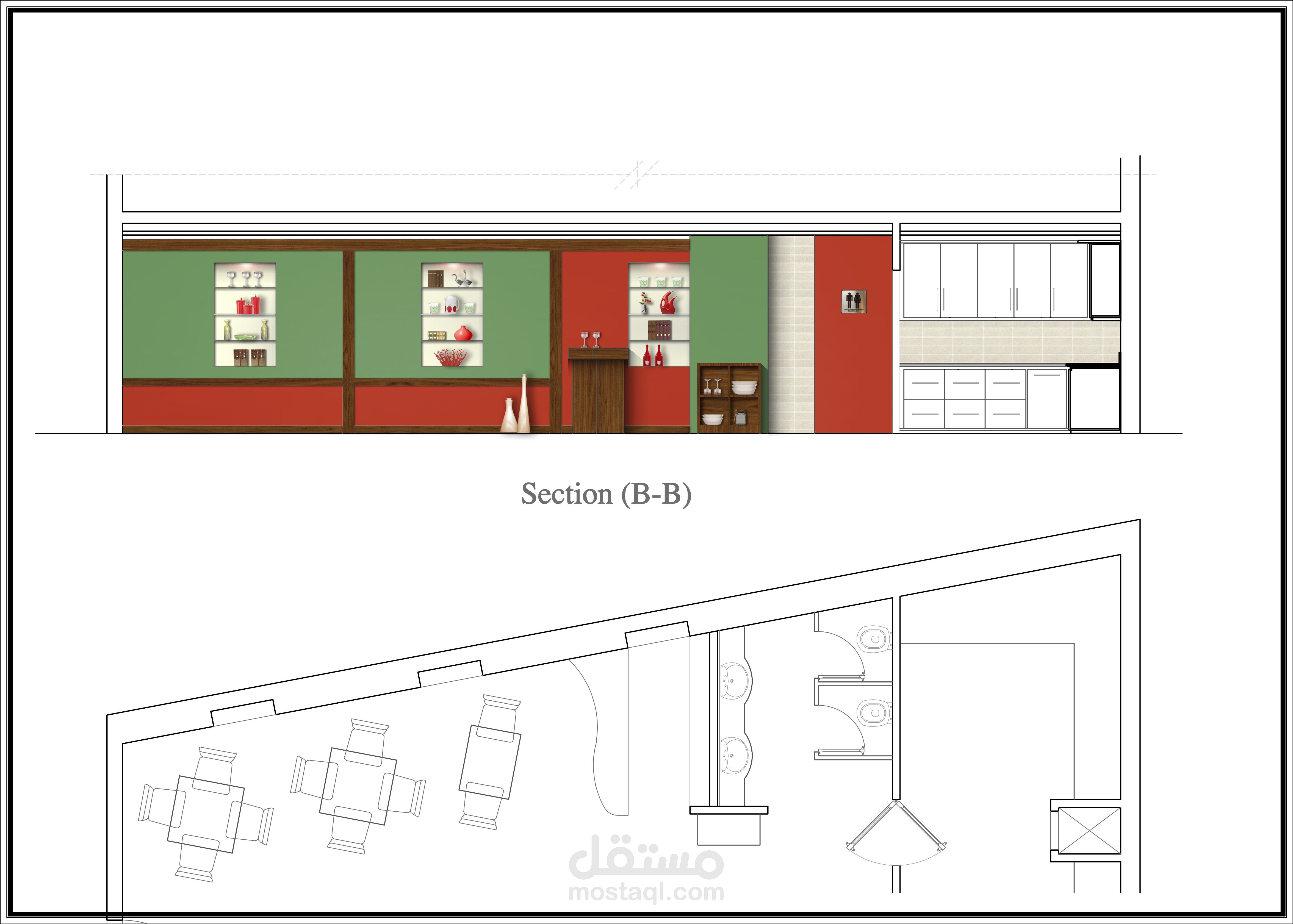 تصميم داخلى لمطعم مأكولات ايطالية و كافيه من طابقين