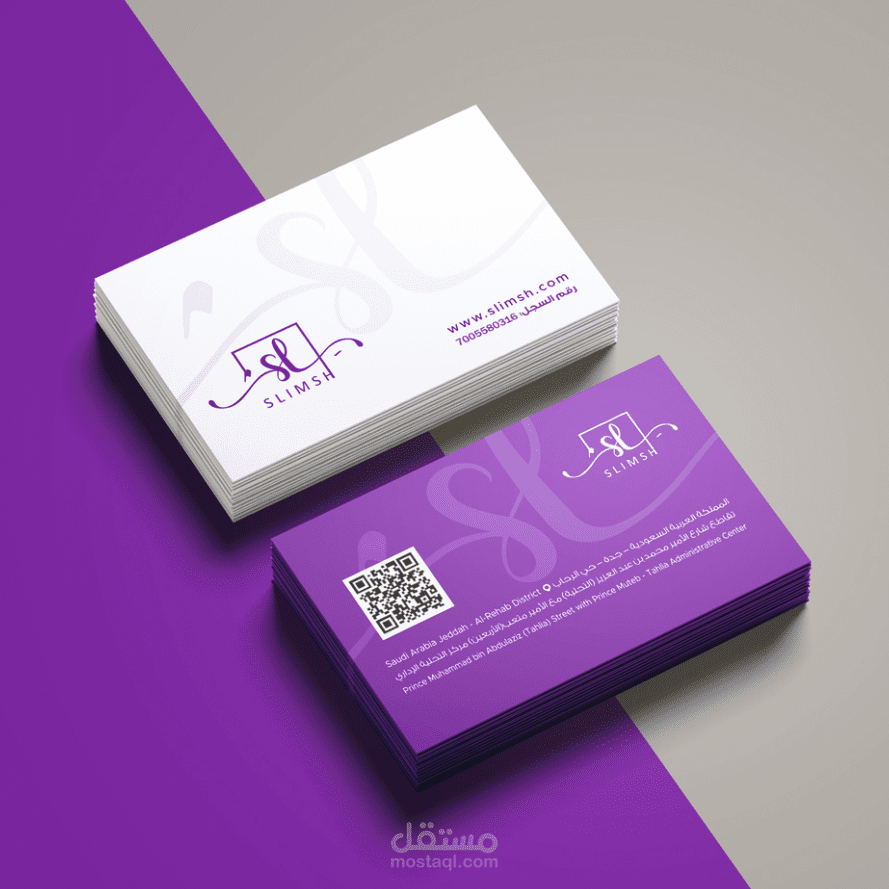 يحمل الشعار اسم "سلمش" باللغة العربية و*"Slimsh"* بالإنجليزية، بخط واضح وسلس يعزز الهوية البصرية للعلامة.