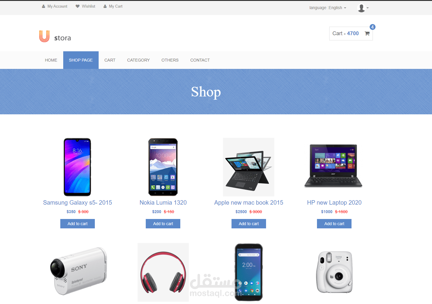 تطوير وتصميم متجر الكتروني حسب الطلب ووسيلة دفع الكتروني بالاضافة الي برمجة داشبورد لل admin لرفع صور المنتجات واضافة وحذف وتعديل البيانات والمتجات الخاصة بالموقع