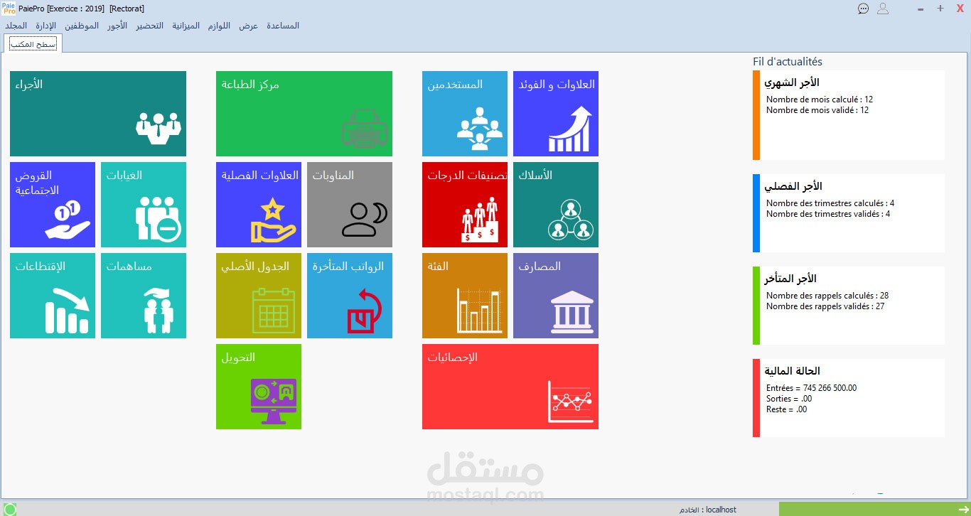 إدارة الموظفين وحساب الأجور وتتبع الميزانية.