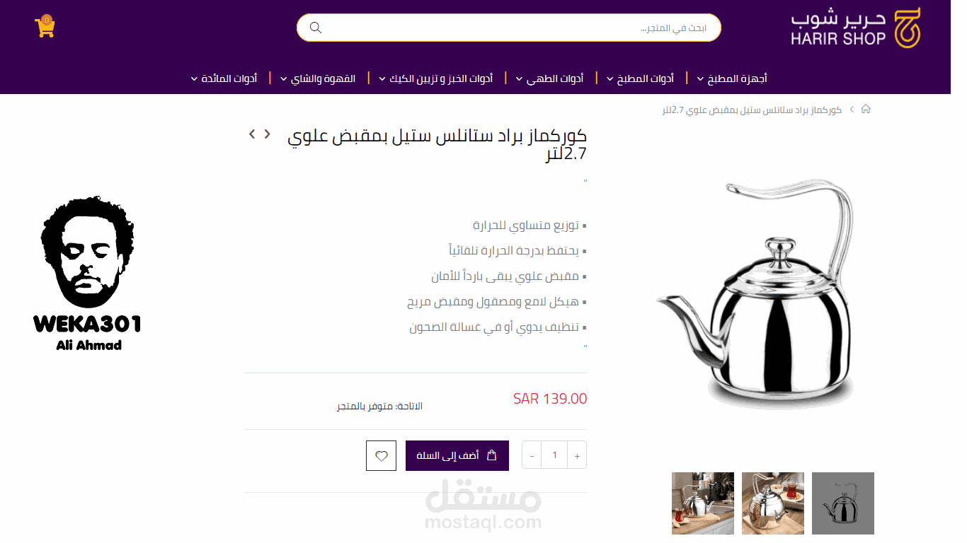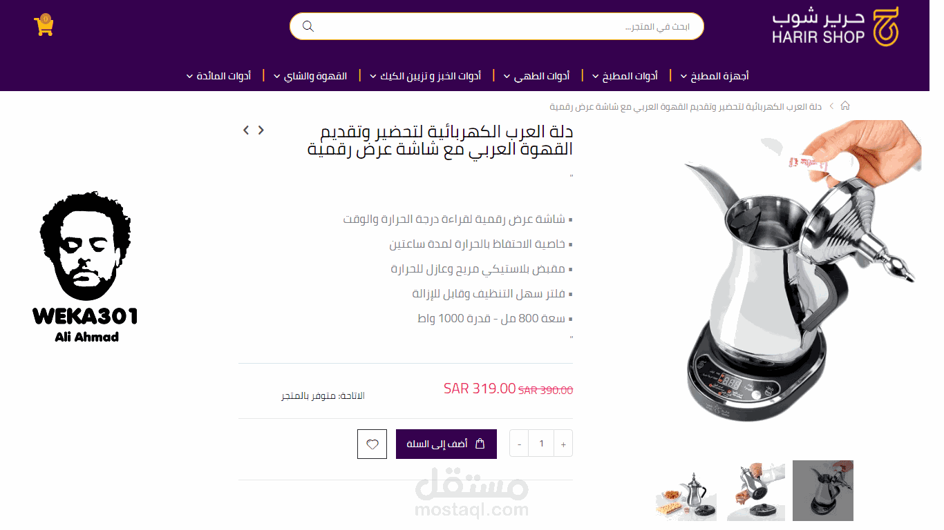 إليكم بعض من نماذج المنتجات التي أضفتها إلى متجر Harir Shop على منصة ماجنتو، وذلك من خلال توظيفي على مستقل.