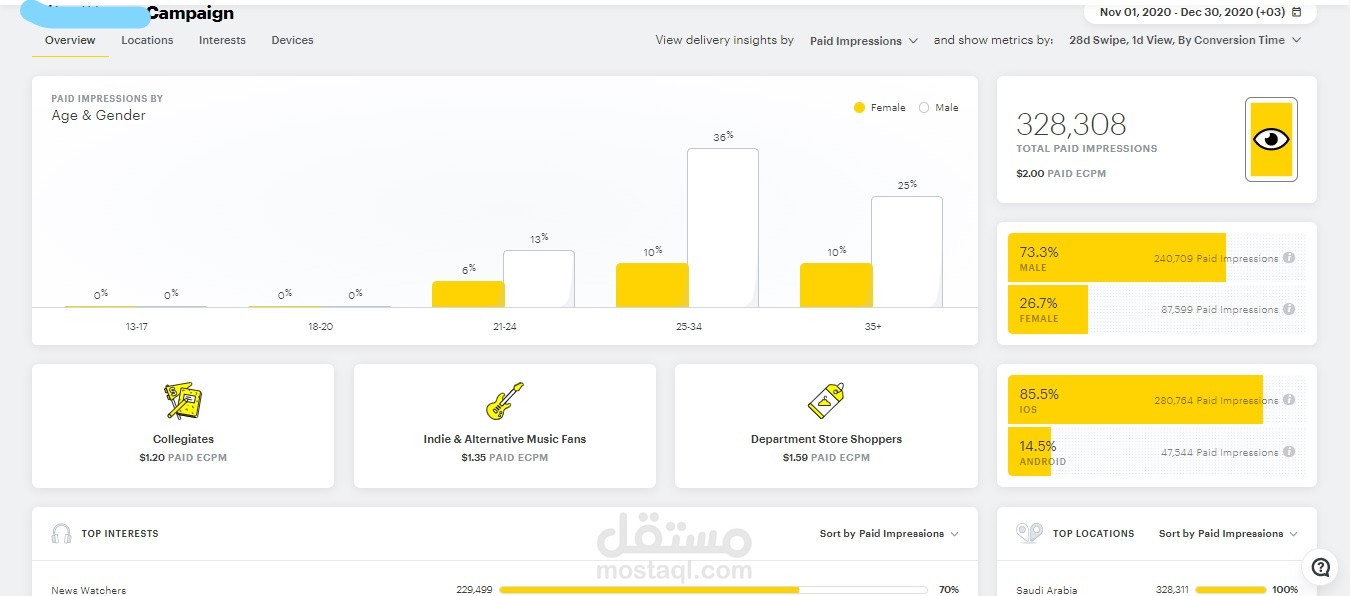 ادارة حملات اعلانية على سناب شات لصالح شركة عقارية
