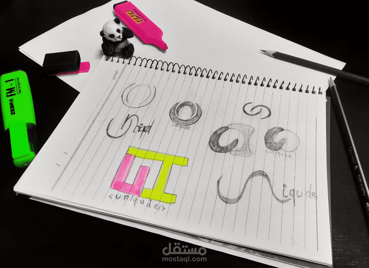 والمميز فيه أن الحرف الثاني n صمم بشكل يظهر بأنه الفراغ بين الحرف الأول u والثالث i