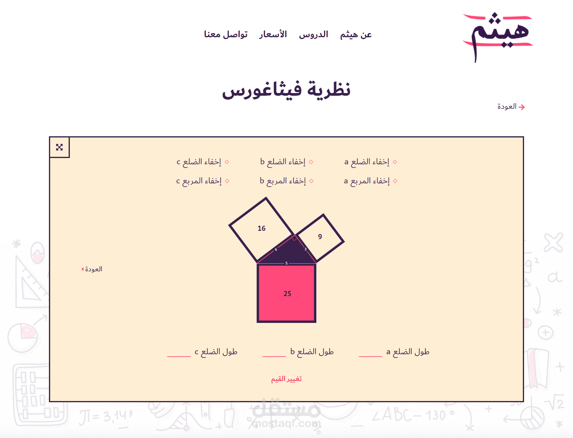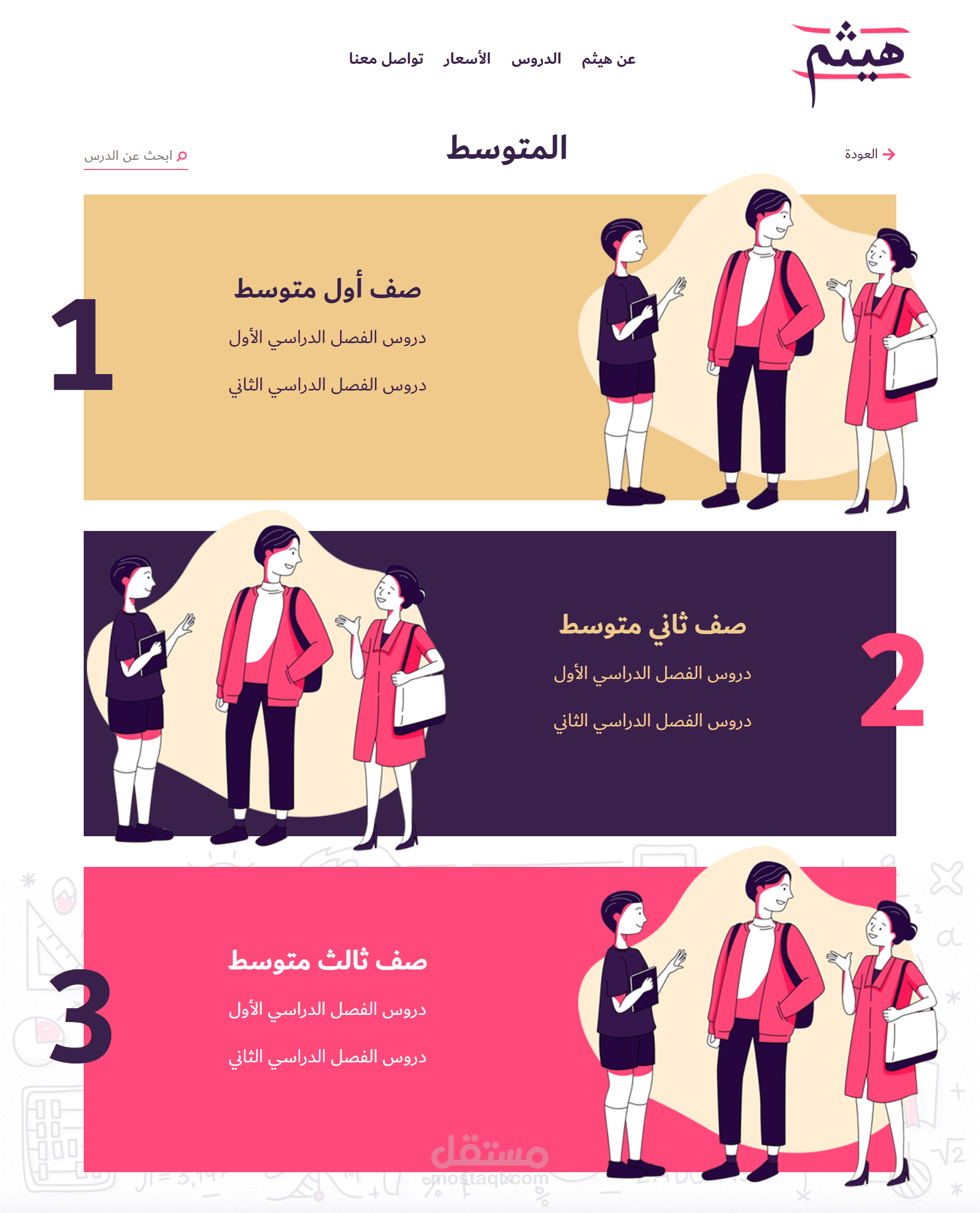 موقع هيثم هو موقع تعليمي تفاعلي تم تصميم وتطوير الواجهات الأمامية للموقع والدروس التفاعلية.