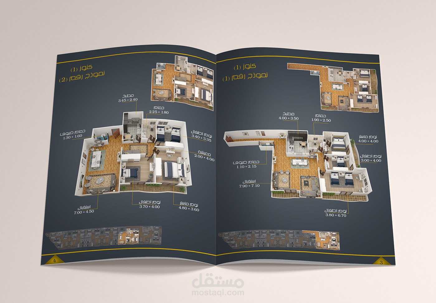 تصميم كتيب للتسويق العقاري لعده ابراج بالمنصورة من خلال المخططات المعمارية 3d