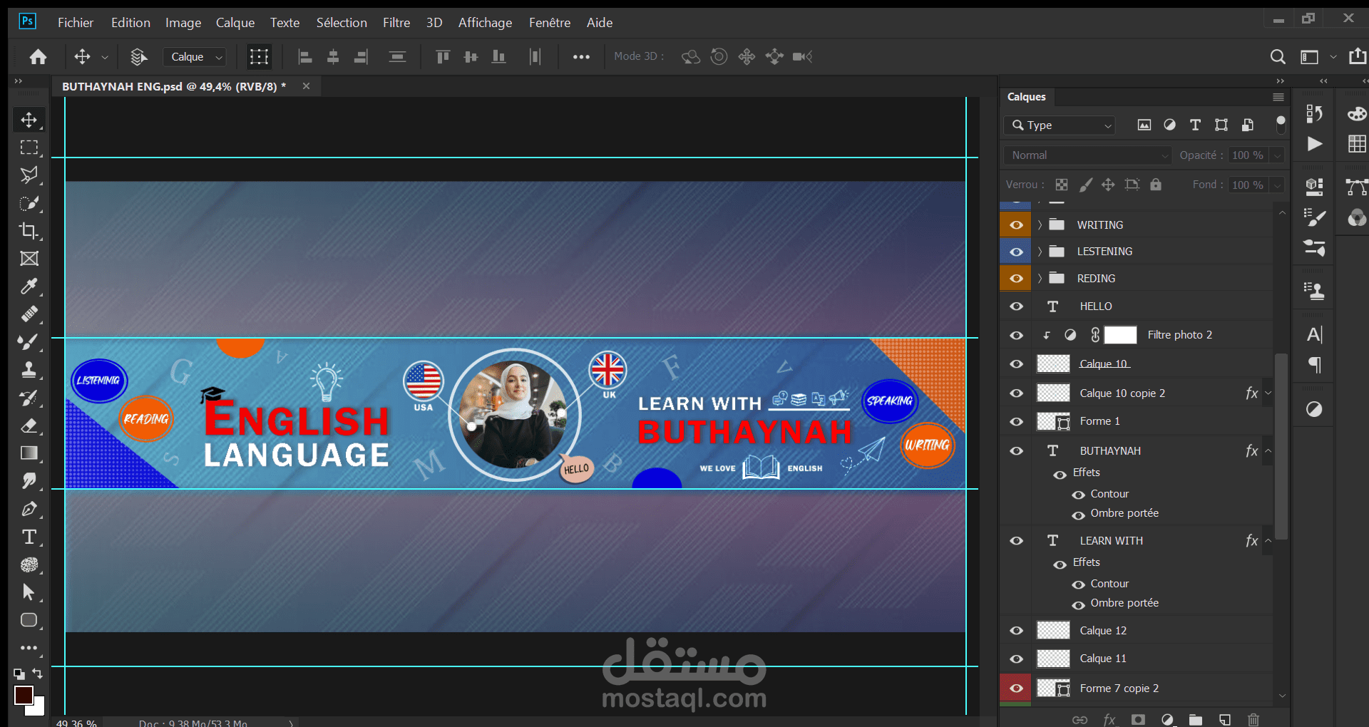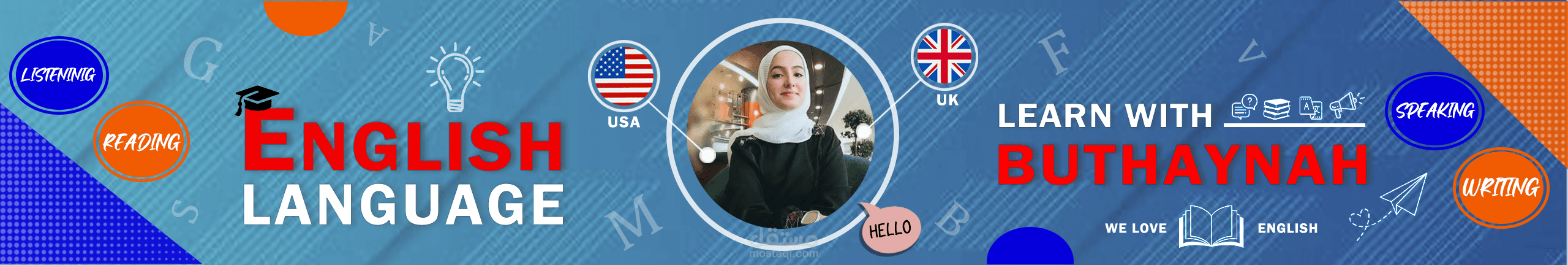 قمت بتصميم غلاف قناة يوتيوب لصديقة تقوم بتدريس اللغة الإنجليزية
