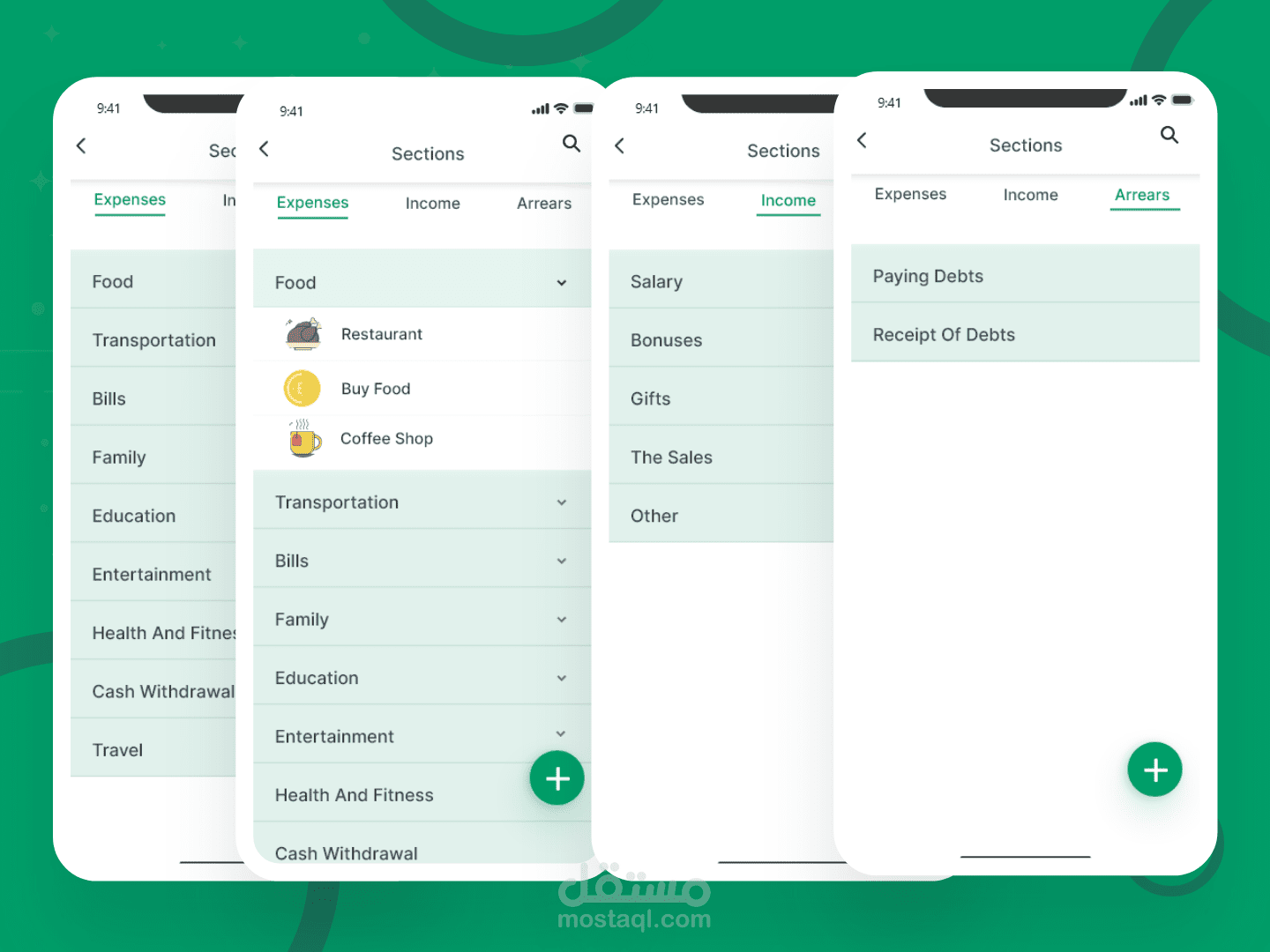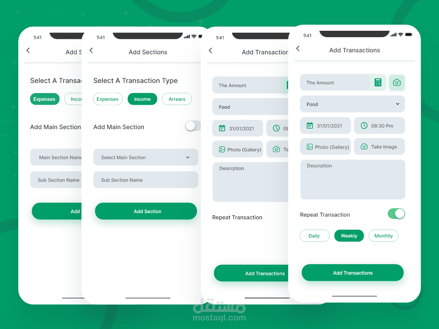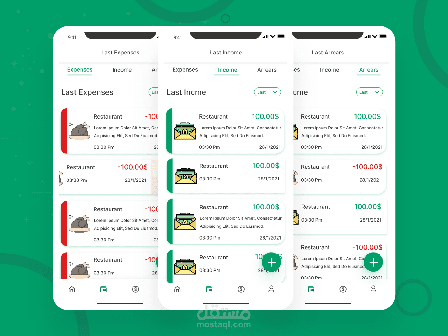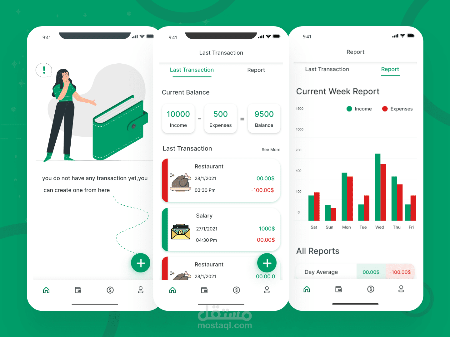 يستطيع المستخدم تدوين كل معاملاته المالية سواءً كانت دخل أو مصروف أو دين