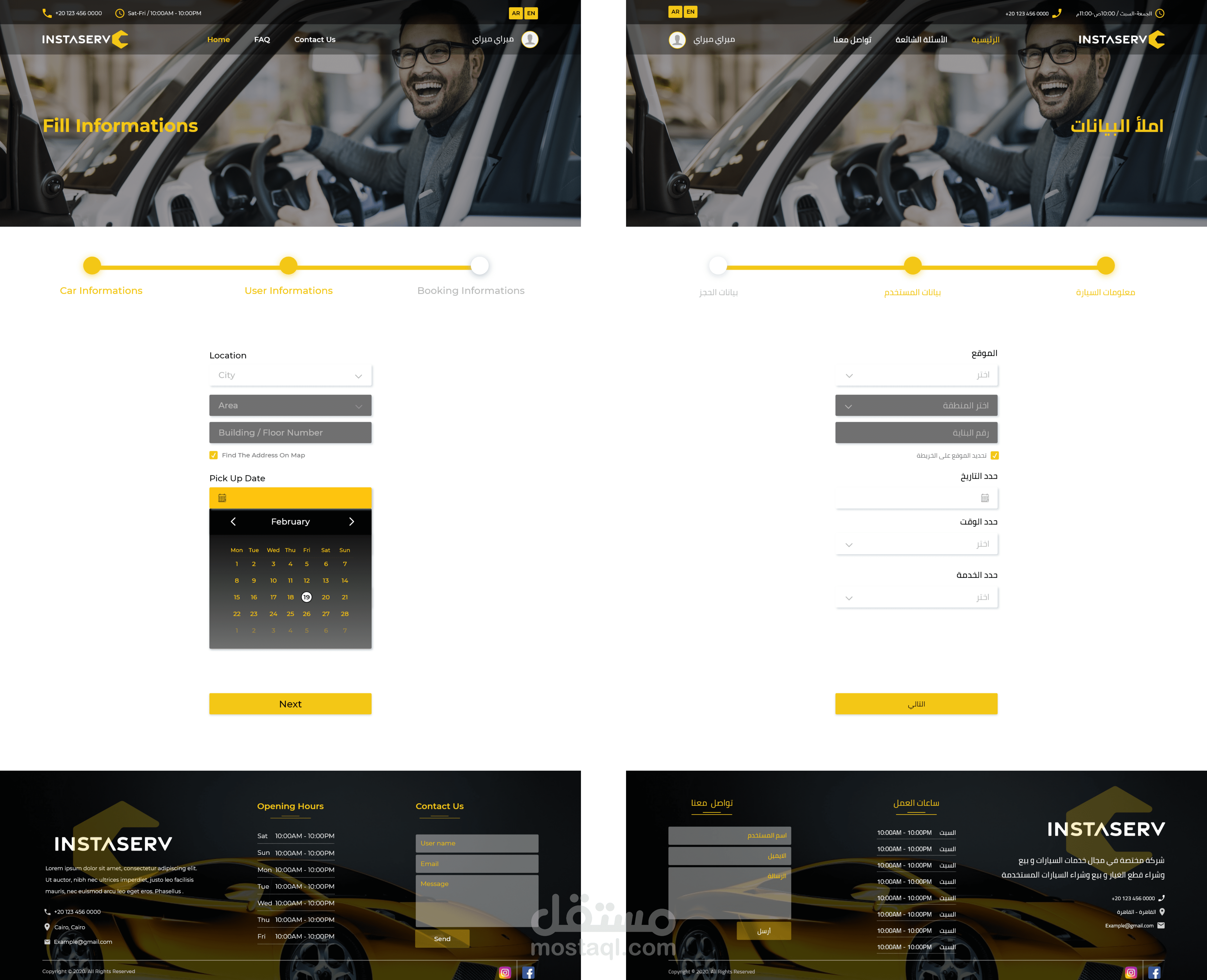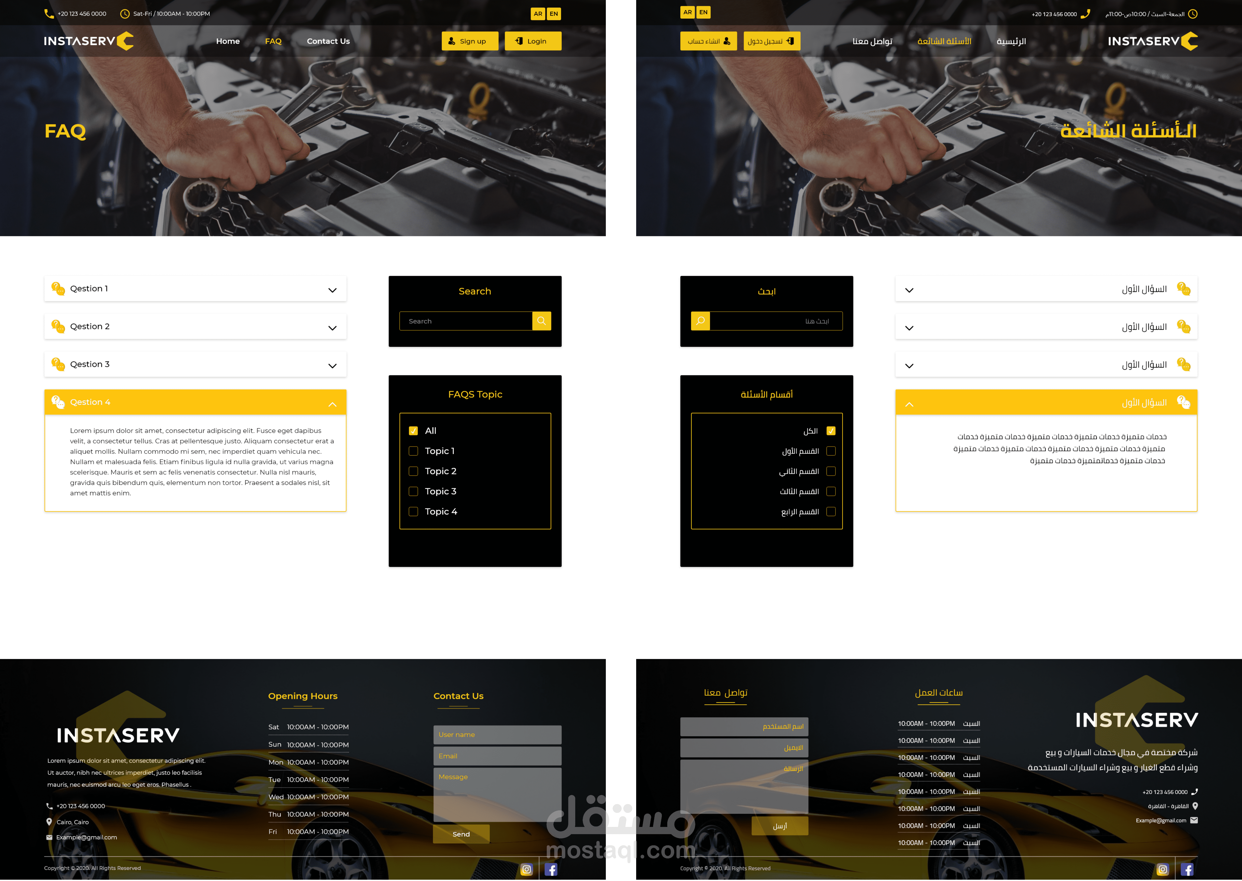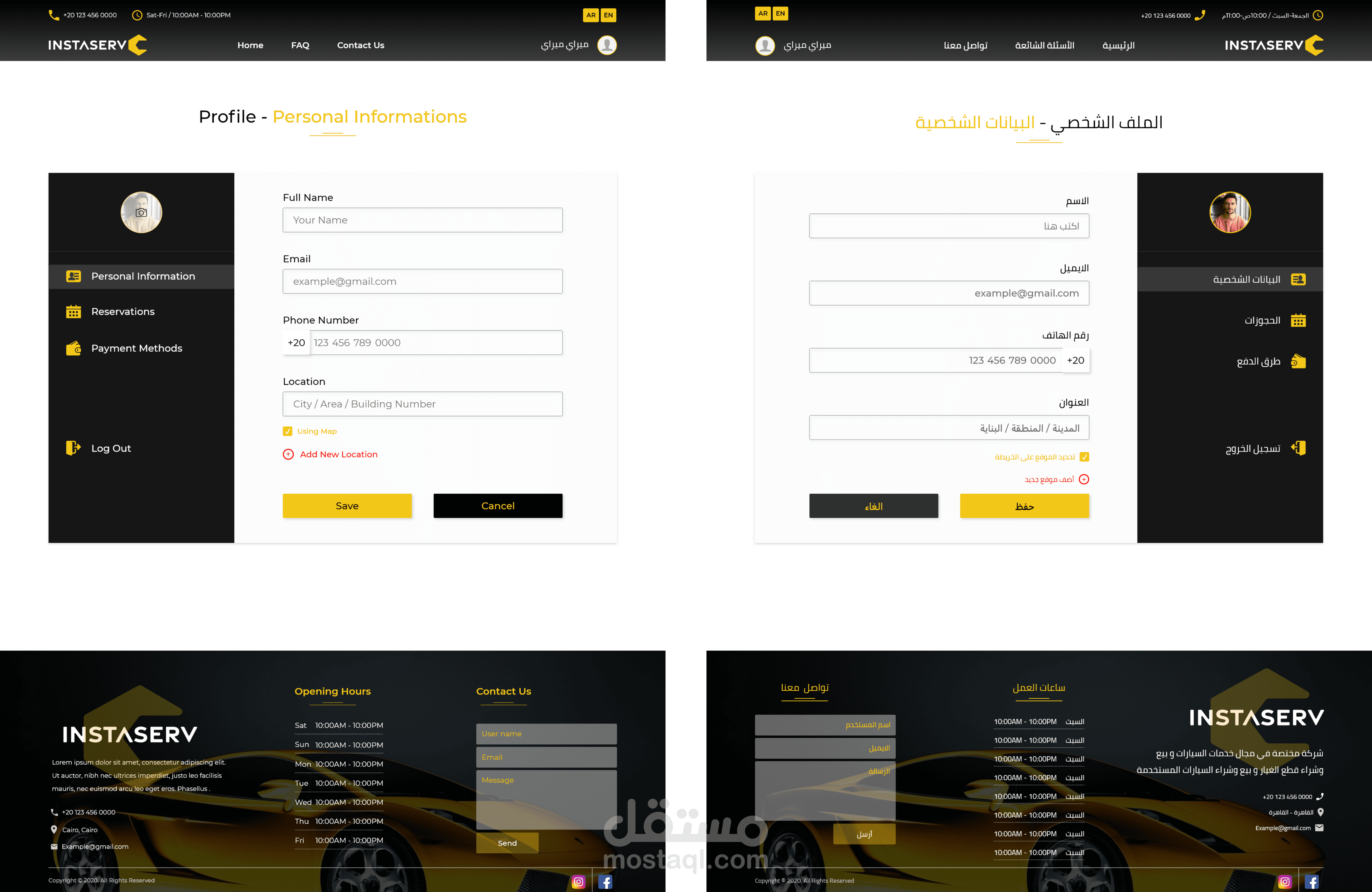 تصميم موقع باللغة العربية والانجليزية ، يضم الصفحة الرئيسية ، صعحة تواصل معنا ، صفحة الاسئلة الشائعة ، وصفحة الملف الشخصي ، وصفحة داخلية
