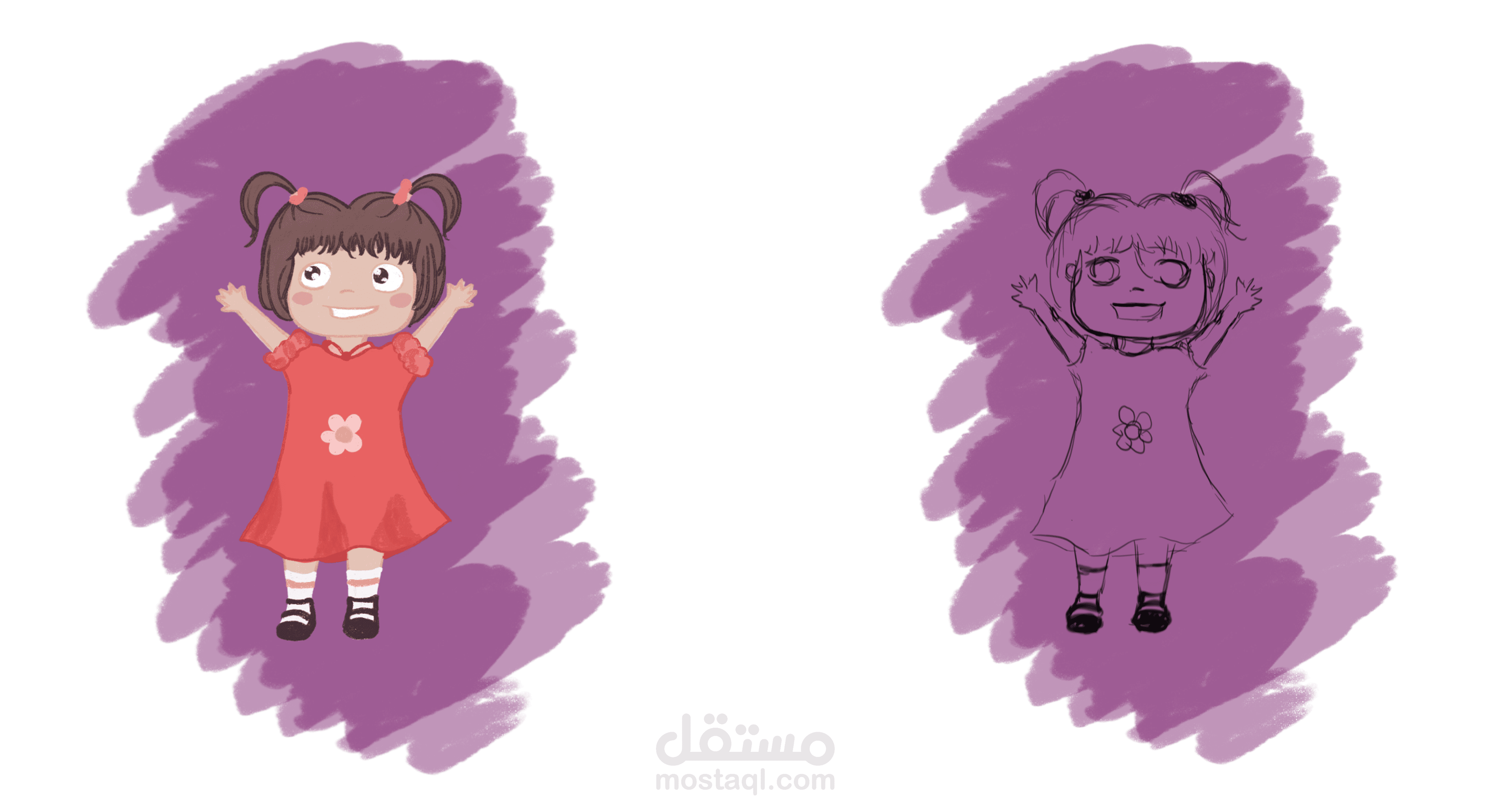 هذه بعض الرسومات من قصة (أنشودة النوم) التي قمت بتنفيذها مع الكاتبة المبدعة، المشروع يتضمن القصة بالإضافة إلى دفتر للأنشطة وبعض الصور المجهزة للطباعة.