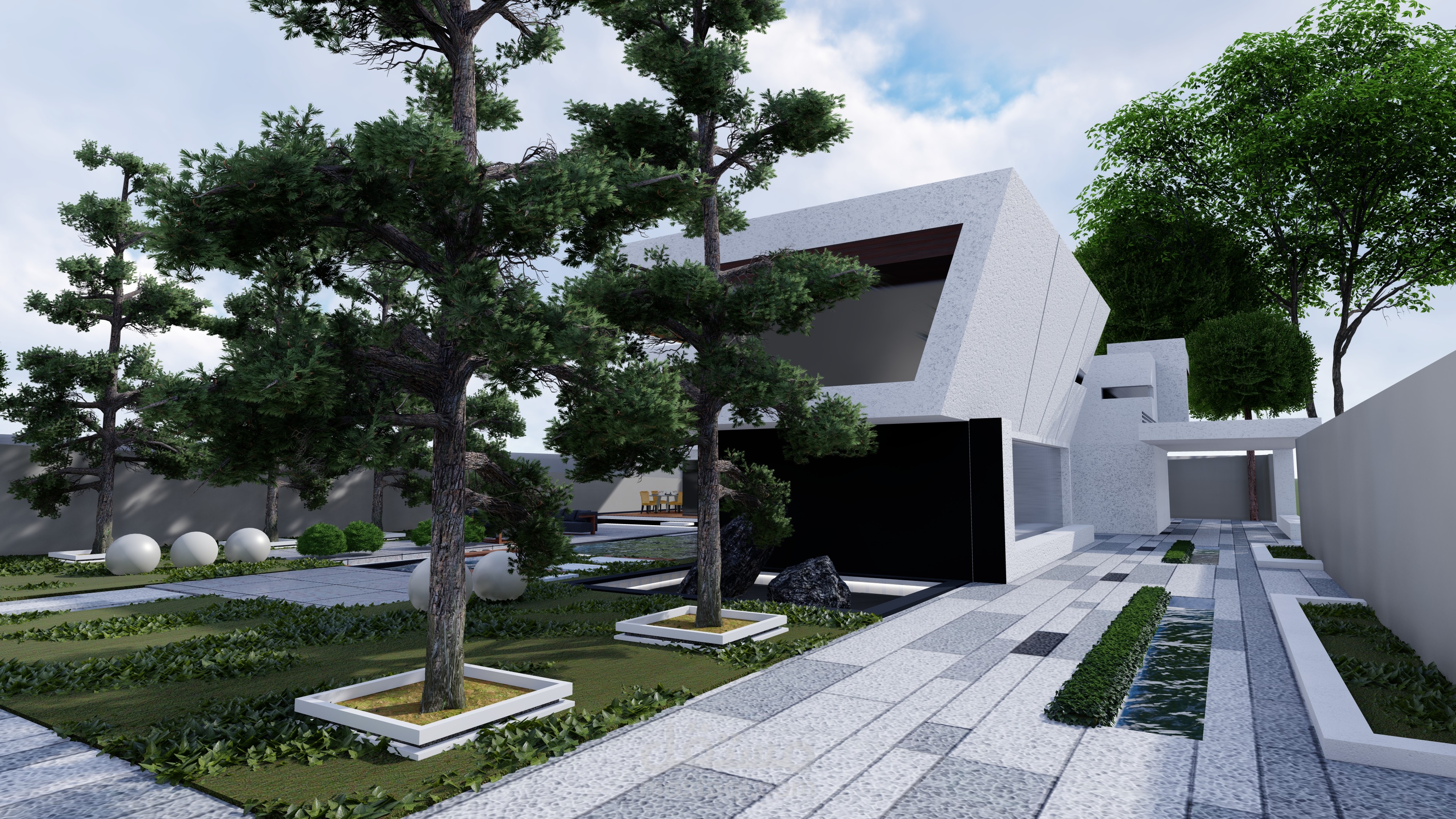 تصميم اللاندسكيب والواجهات الخاصة بفيلا بريف احدى المحافظات السورية