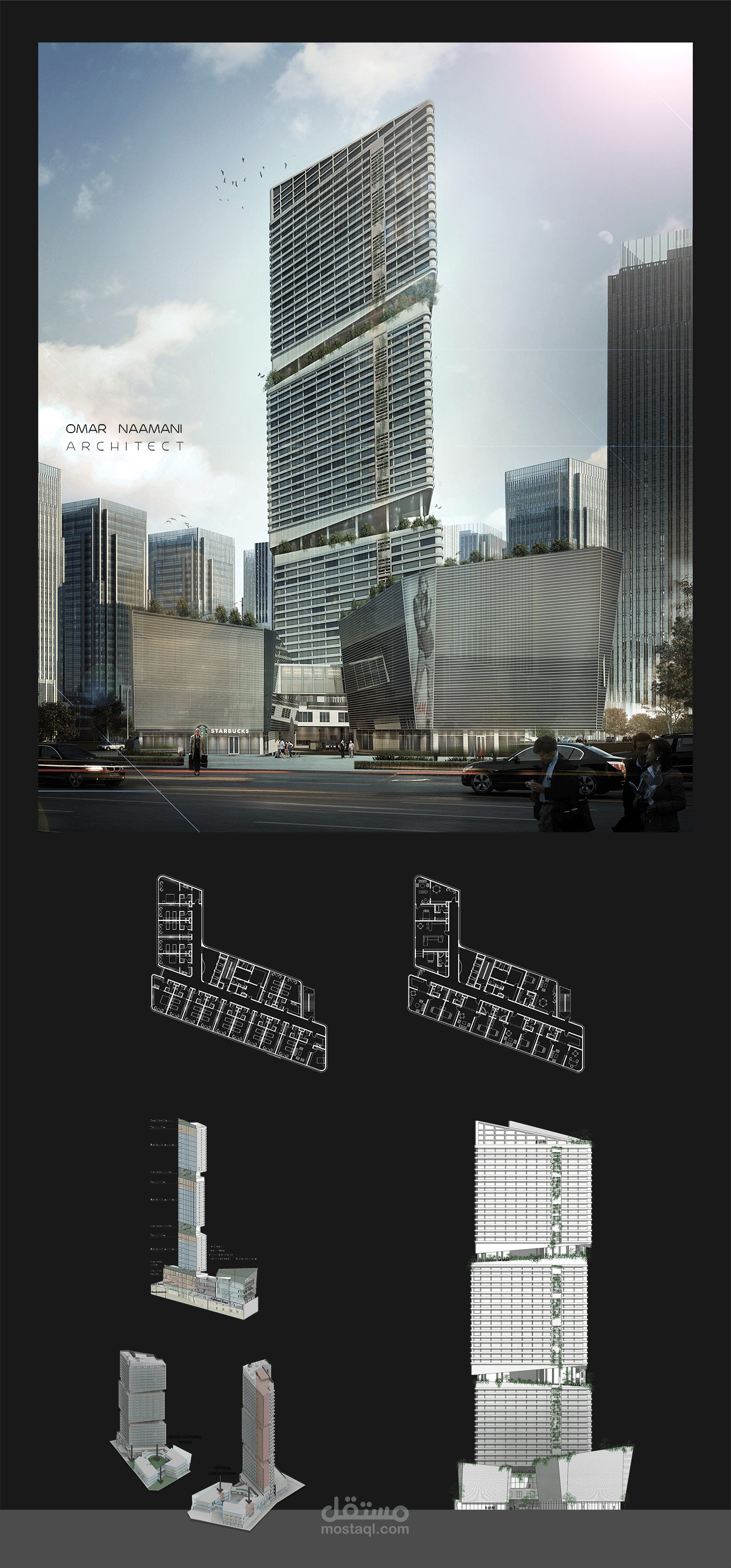 تصميم مشروع كبير يتألف من أوتيل ومكاتب للايجار و مطاعم..