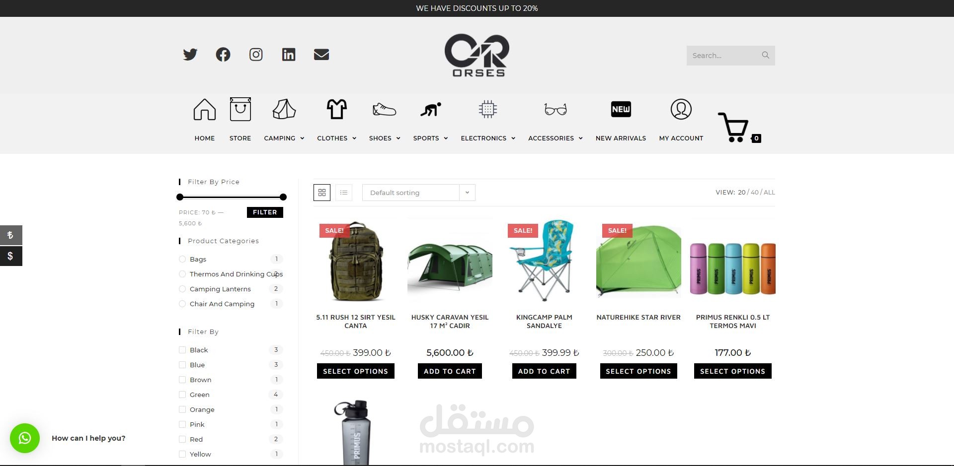 Online store interested in camping and sports products
