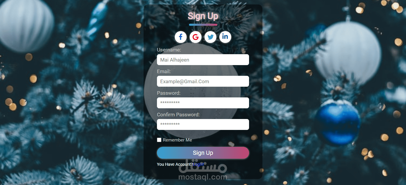 نموذج التسجيل لموقع، متجاوب على جميع الشاشات، دون استعانة بأي تصاميم خارجية.