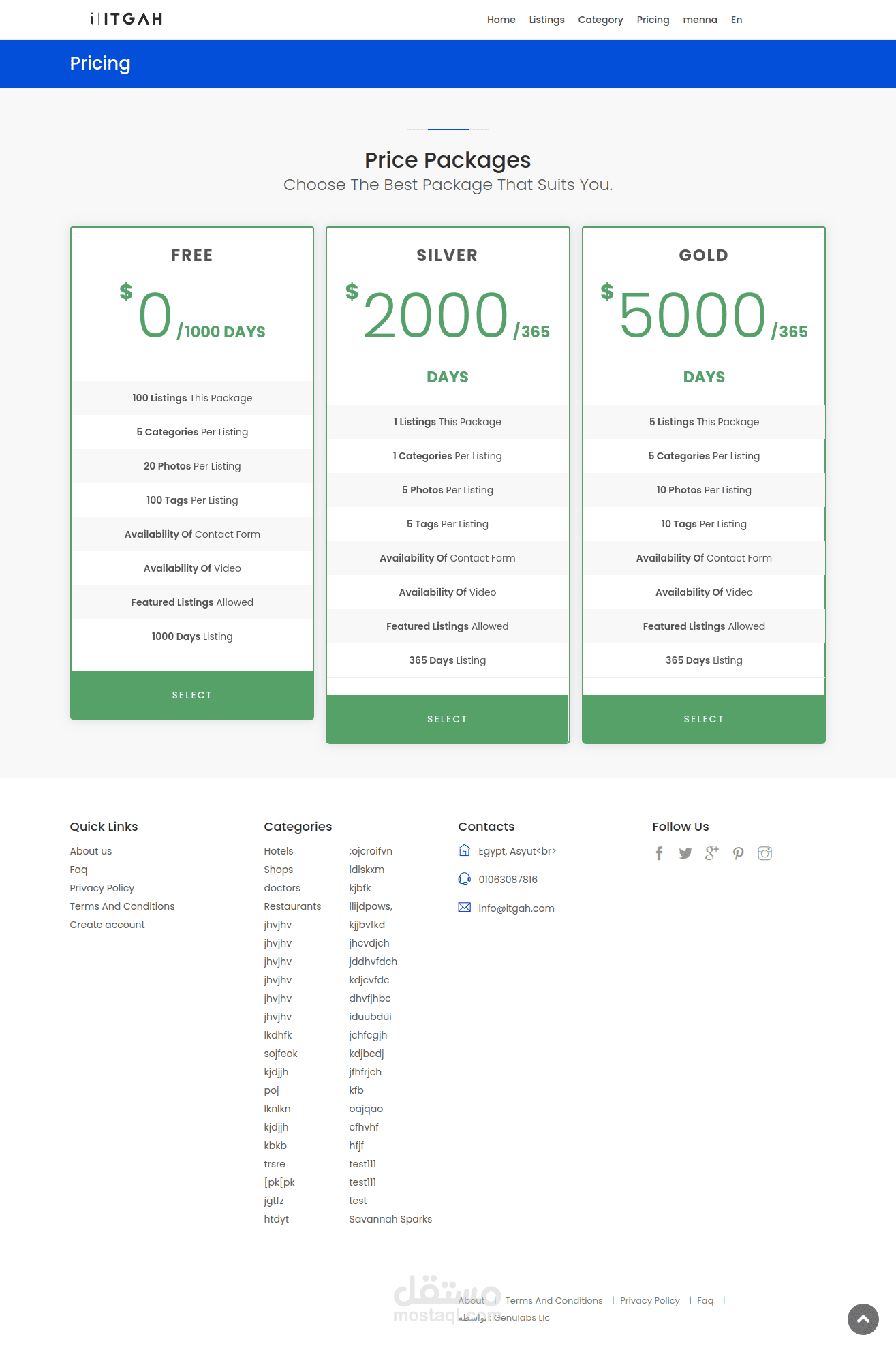 - يعرض الموقع ايضا الباقات التي يستطيع من خلالها التاجر الاشتراك ف الموقع