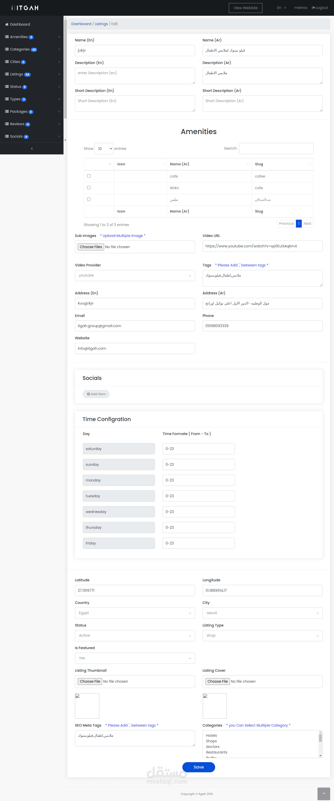 - يوفر الموقع لوحه تحكم لكل من ال تاجر و مساعديه يمكن من خلالها تعديل او حذف او اضافه اي منتجات او فئات جديده