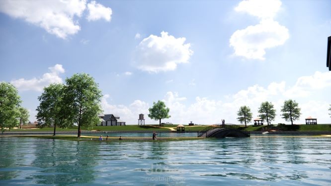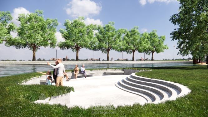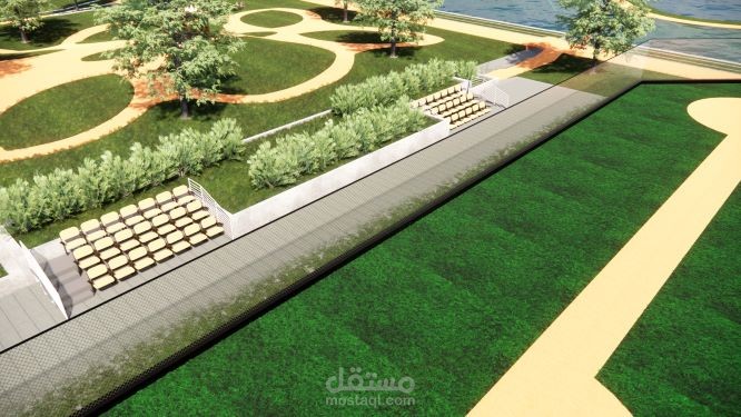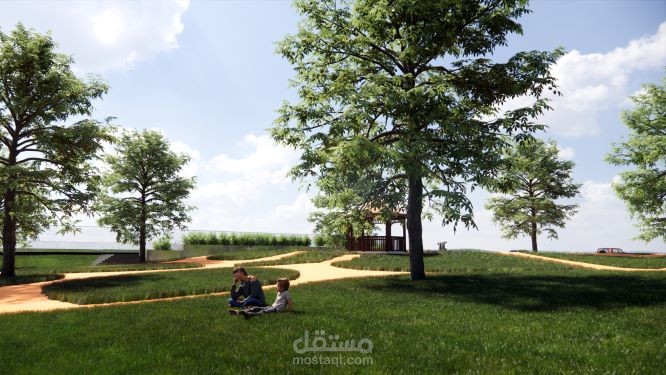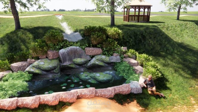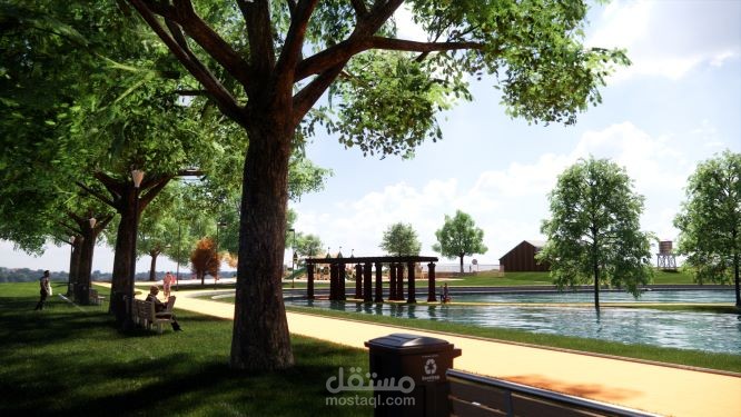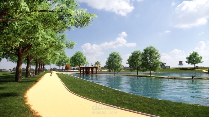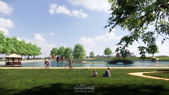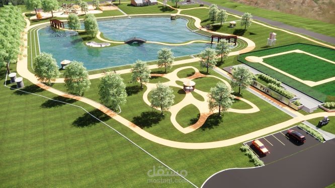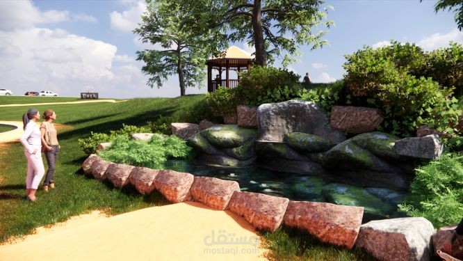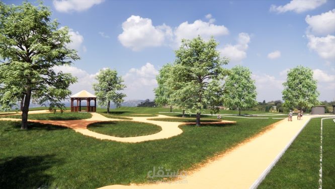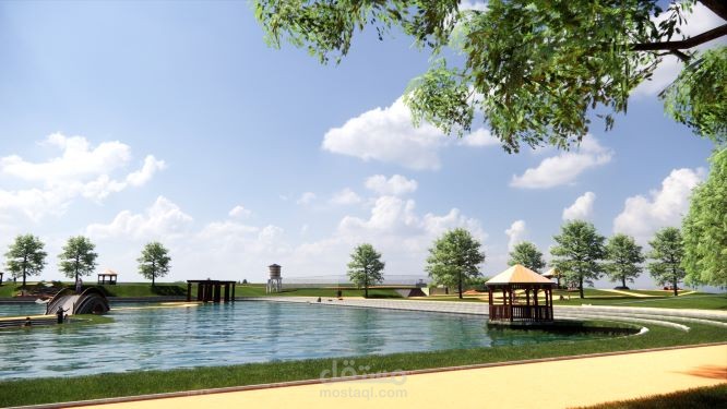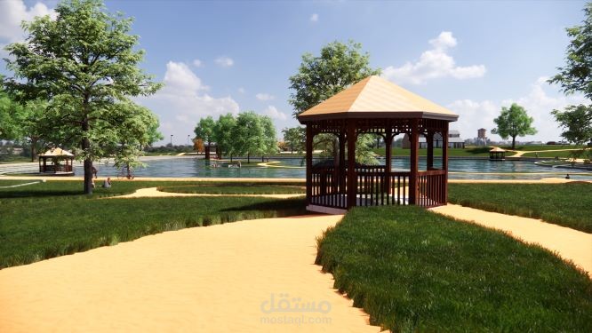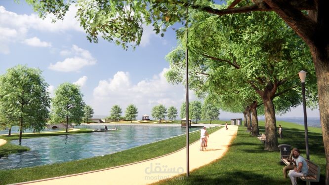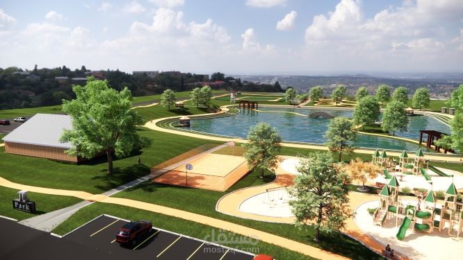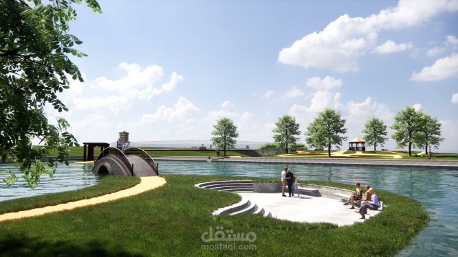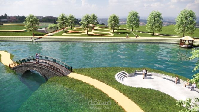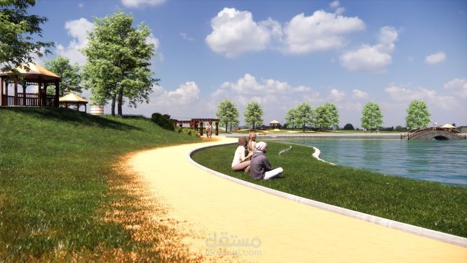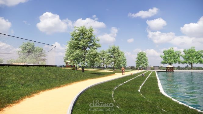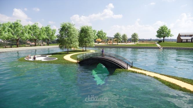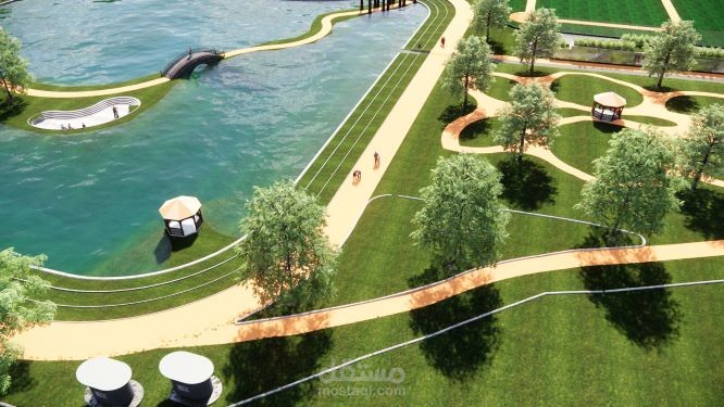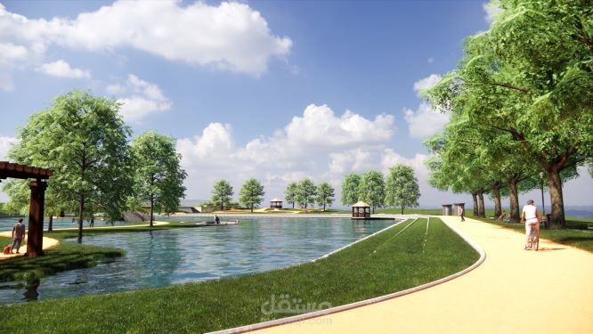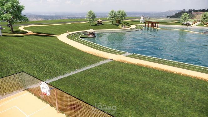 دراسة خصائص قطعة ارض من كنتورات وخلافه وتطويعها لعمل حديقة عامة بوسطها بحيرة تجميع مياه الامطار والسيول وكان يشترط فيها البساطة والإقتصاد في تكلفتها .