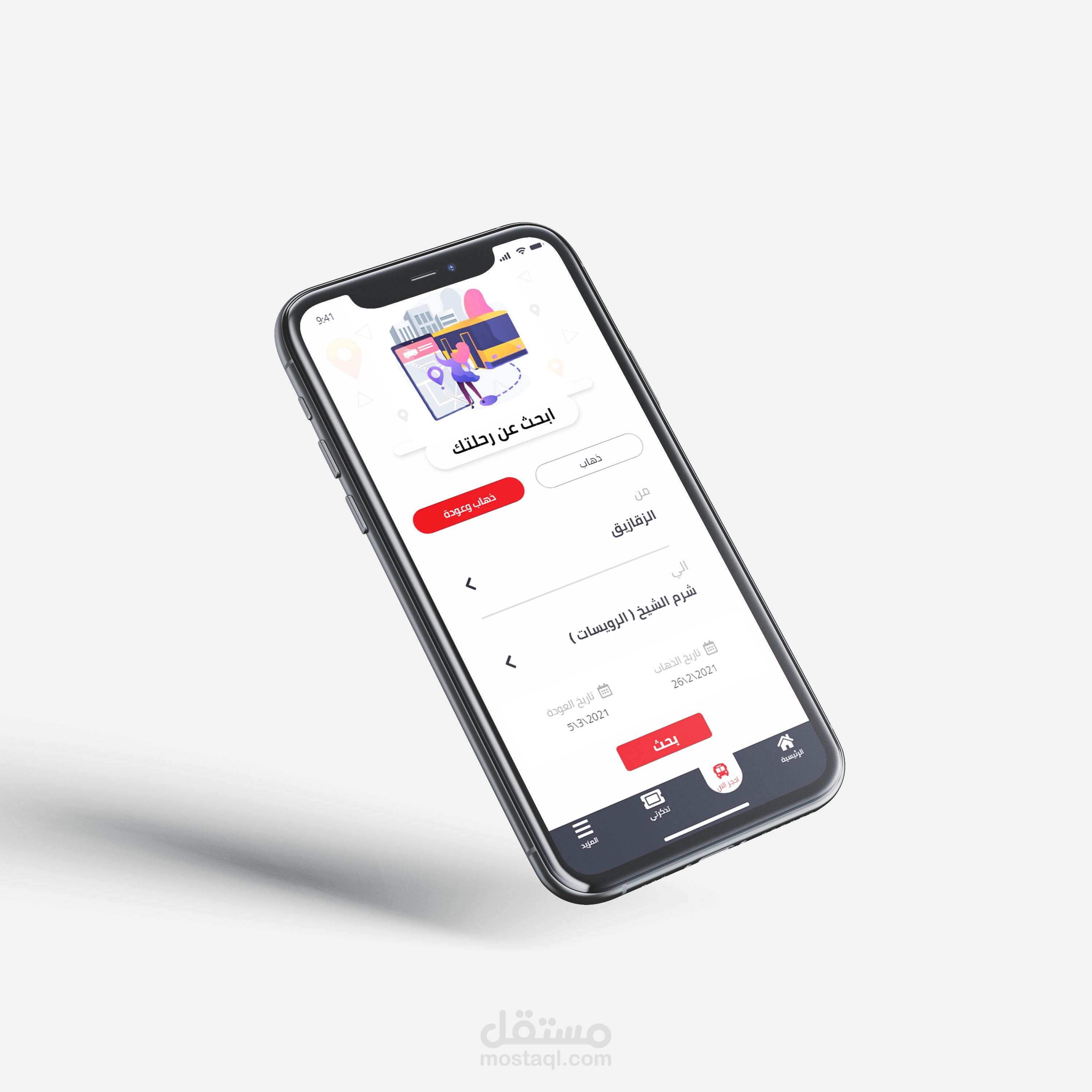 تصميم تطبيق مكون من 32 شاشه تستخدم لحجز اوتوبيسات للسفر باللغه العربيه مصمم بحرفيه عاليه