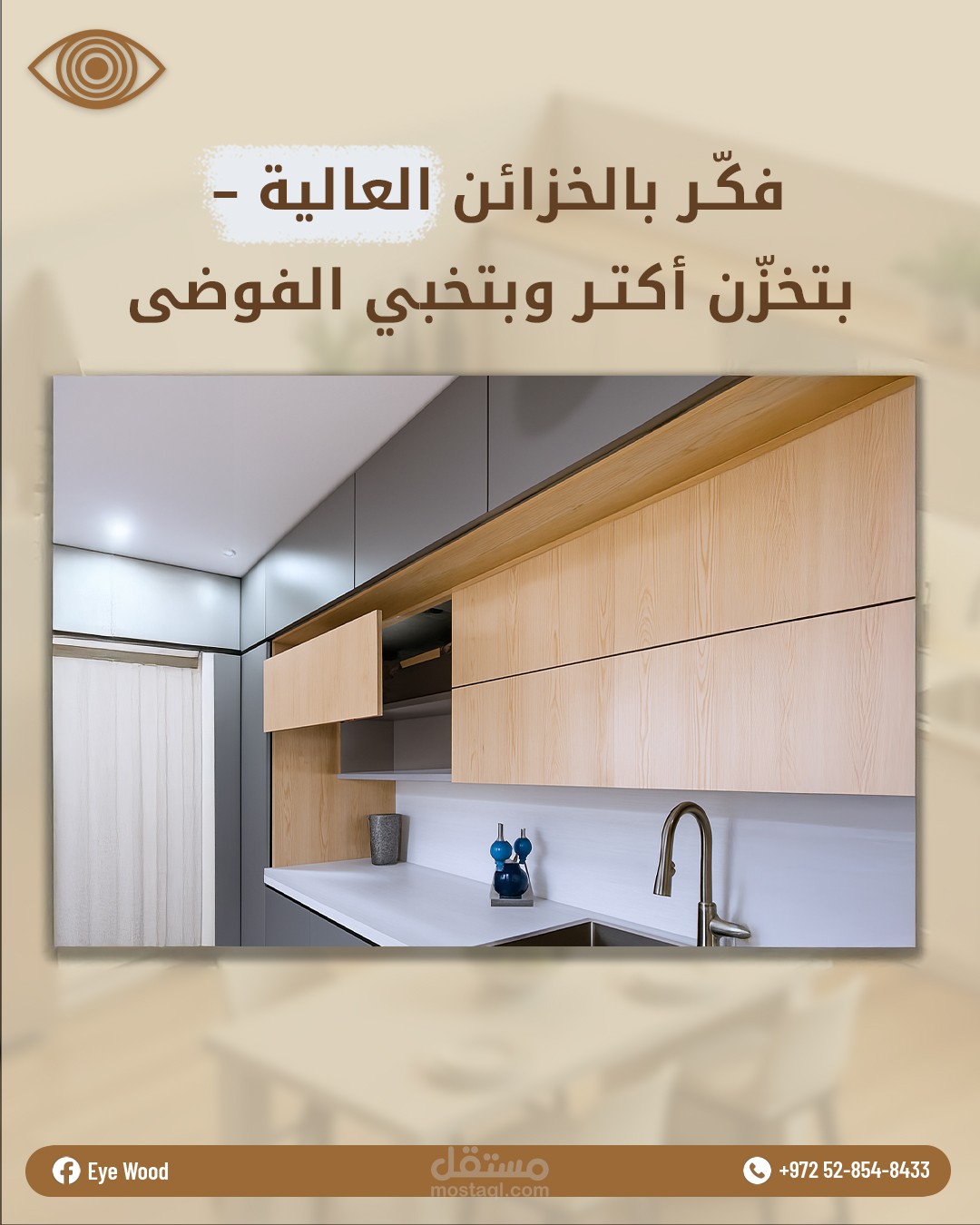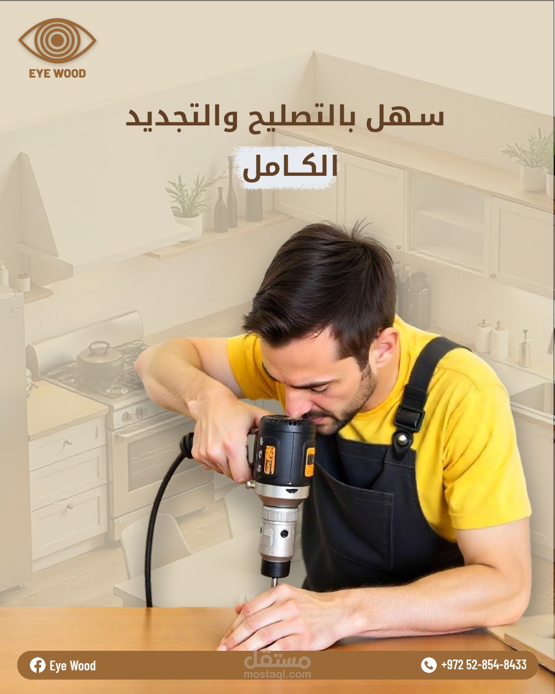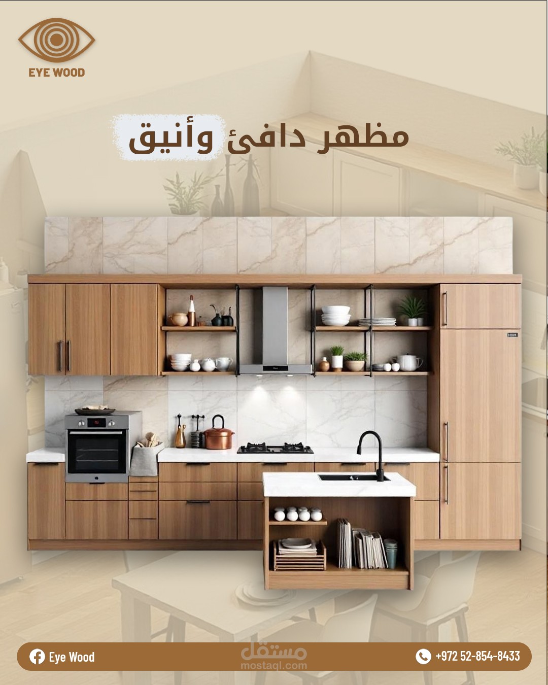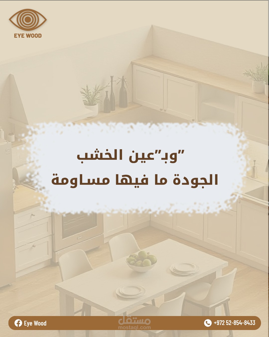 تم تنفيذ تصميمات سوشال ميديا احترافية لمحل نجارة متخصص في صناعة المطابخ الخشبية، بهدف التعريف بخدمات المحل، عرض جودة الأعمال، وجذب العملاء المحتملين لزيادة الطلب.