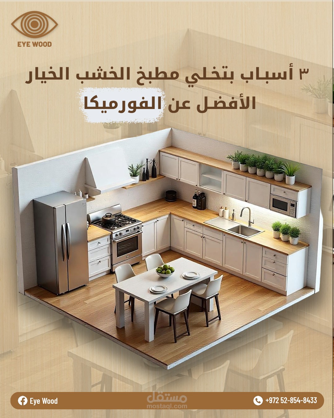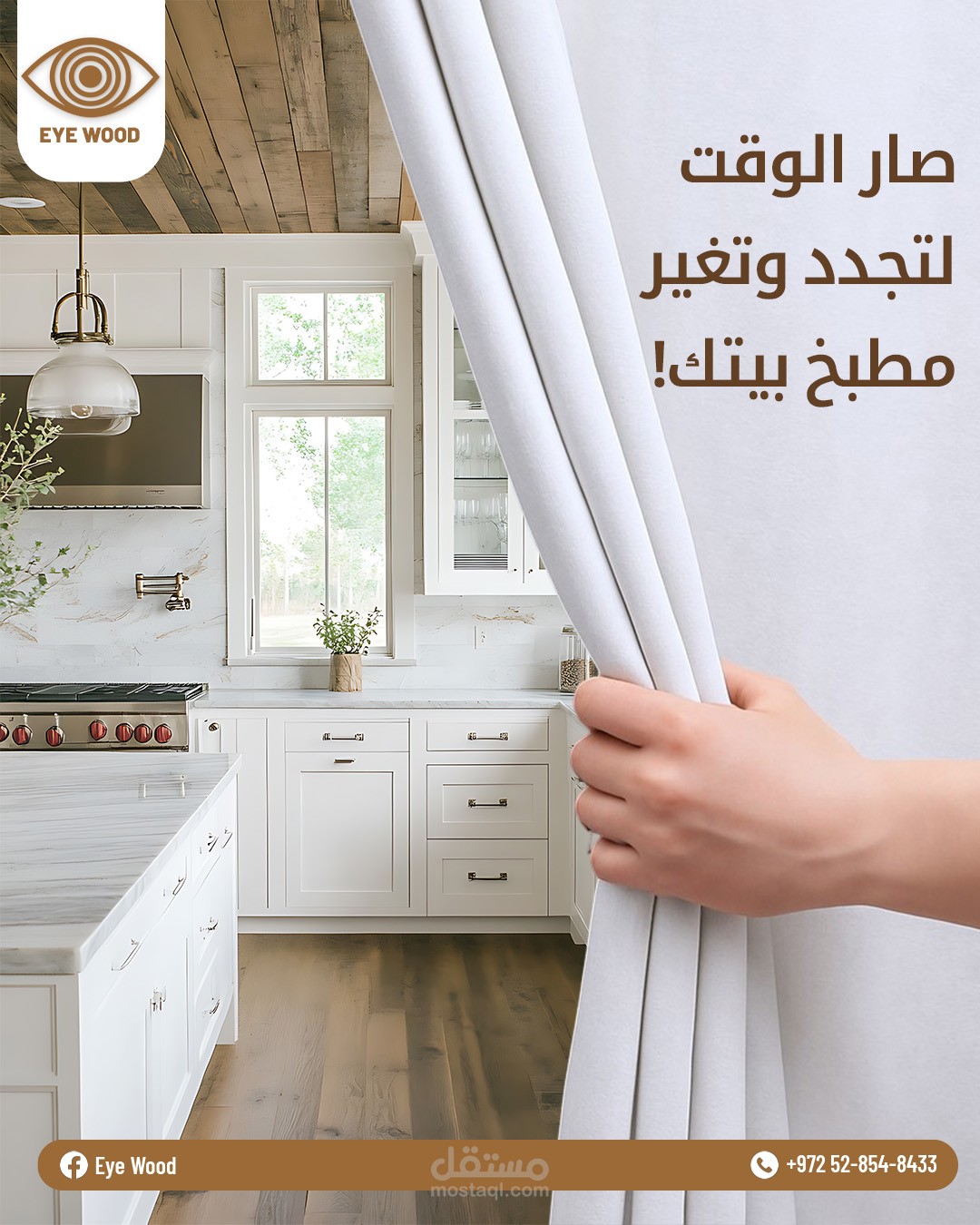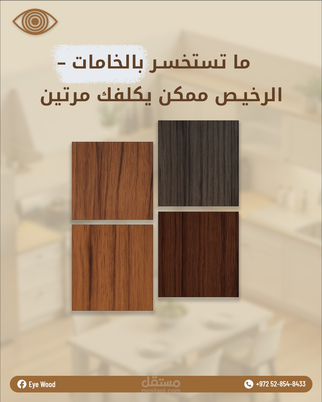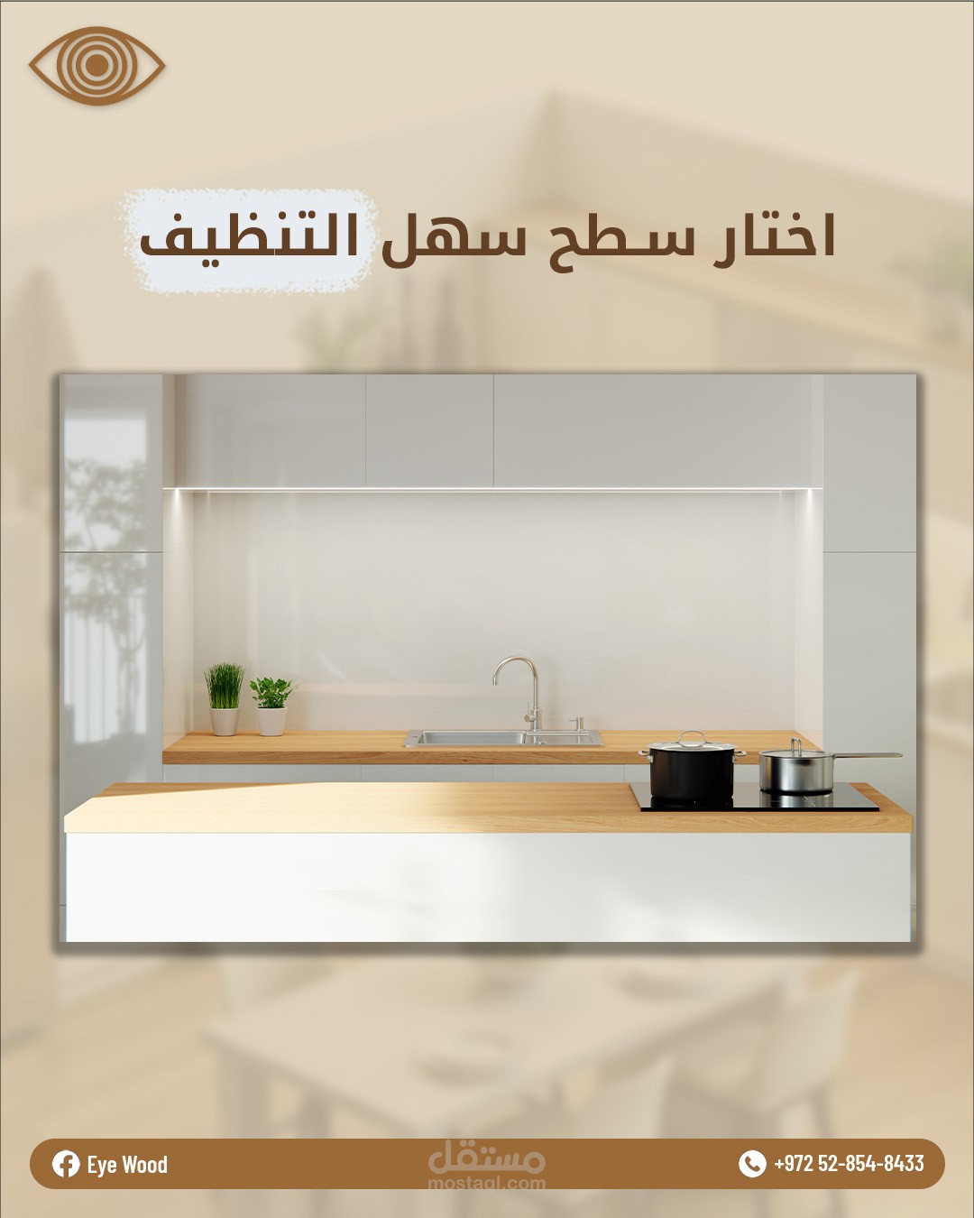 تم تنفيذ تصميمات سوشال ميديا احترافية لمحل نجارة متخصص في صناعة المطابخ الخشبية، بهدف التعريف بخدمات المحل، عرض جودة الأعمال، وجذب العملاء المحتملين لزيادة الطلب.