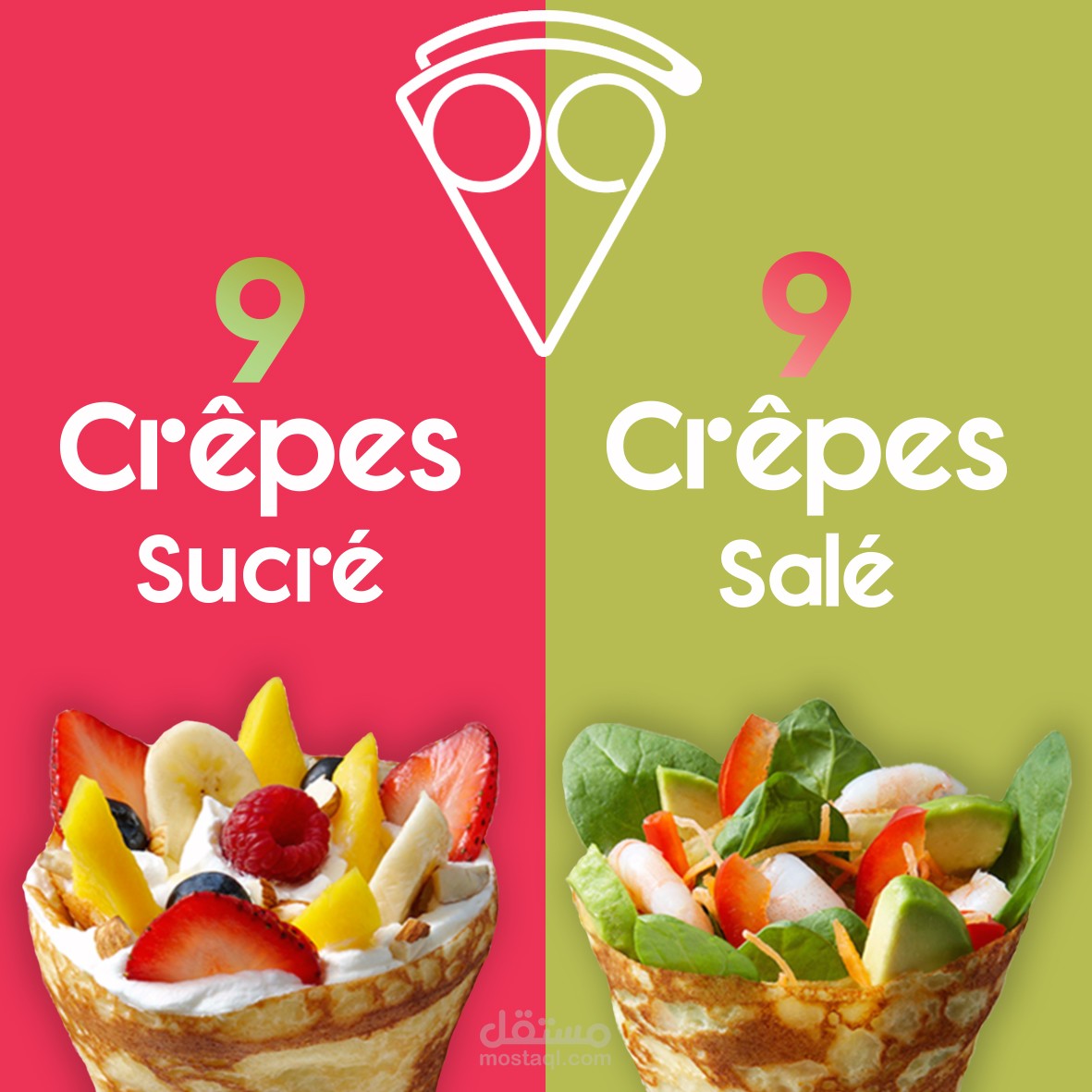 - its a logo symbol for a french restaurant called "99 crepes" specialist in crepes and they give 9 types of salted crepes and 9 sweet crepes, the logo is a combination between the symbol of crepe, shape of heart and number 9, with a gradient of 3 colors light brown (for crepes), light green (salty and vegetarian) and sweet red (sugary), and a sensation of Friendliness, happiness, comforts and Giving the customer a prior idea of the quality of service and the product provided.