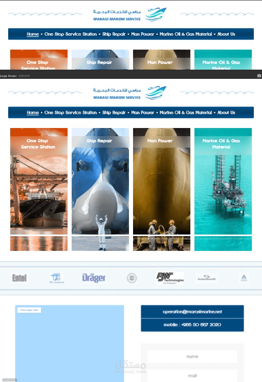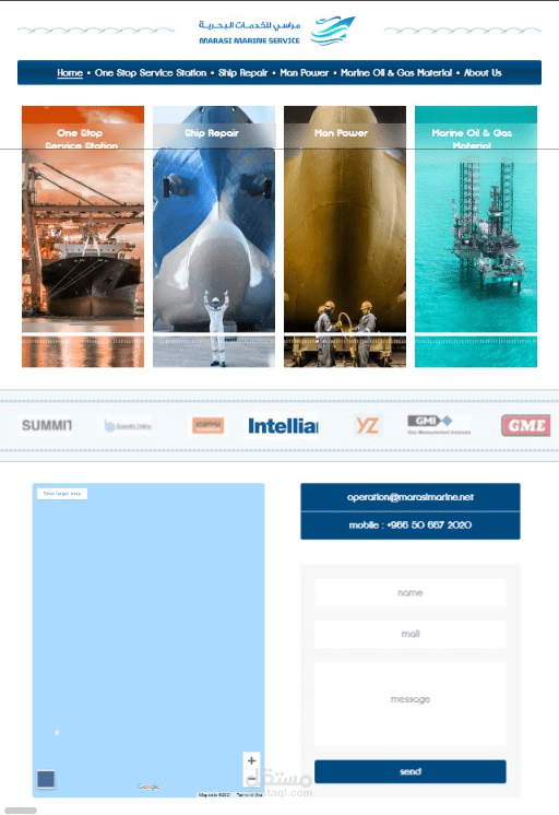 موقع تعريفي لشركة مراسي المتخصصة في الأعمال البحرية.