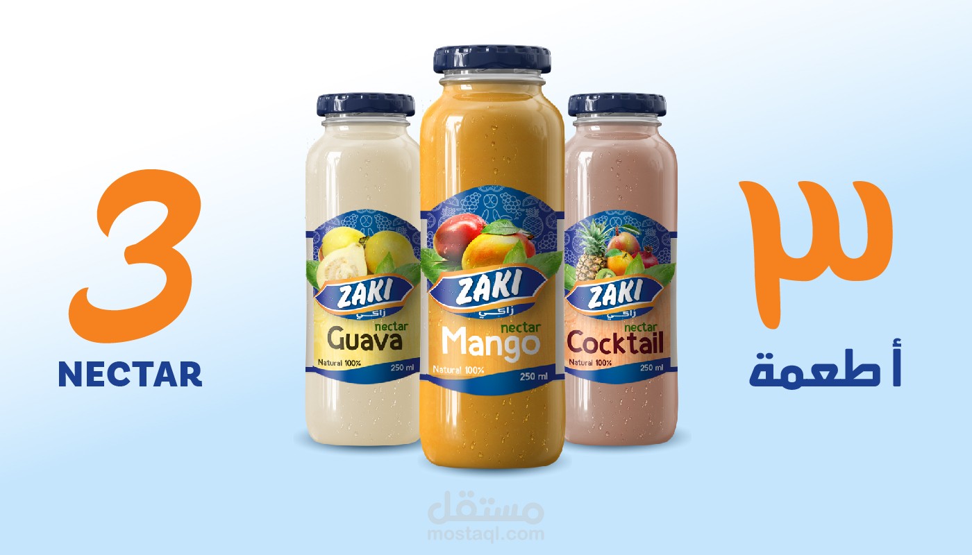 Zaki is a brand of FMCG Products. the brief was to design labels for glass bottles for 3 nectar and to be aligned with zaki branding guides.