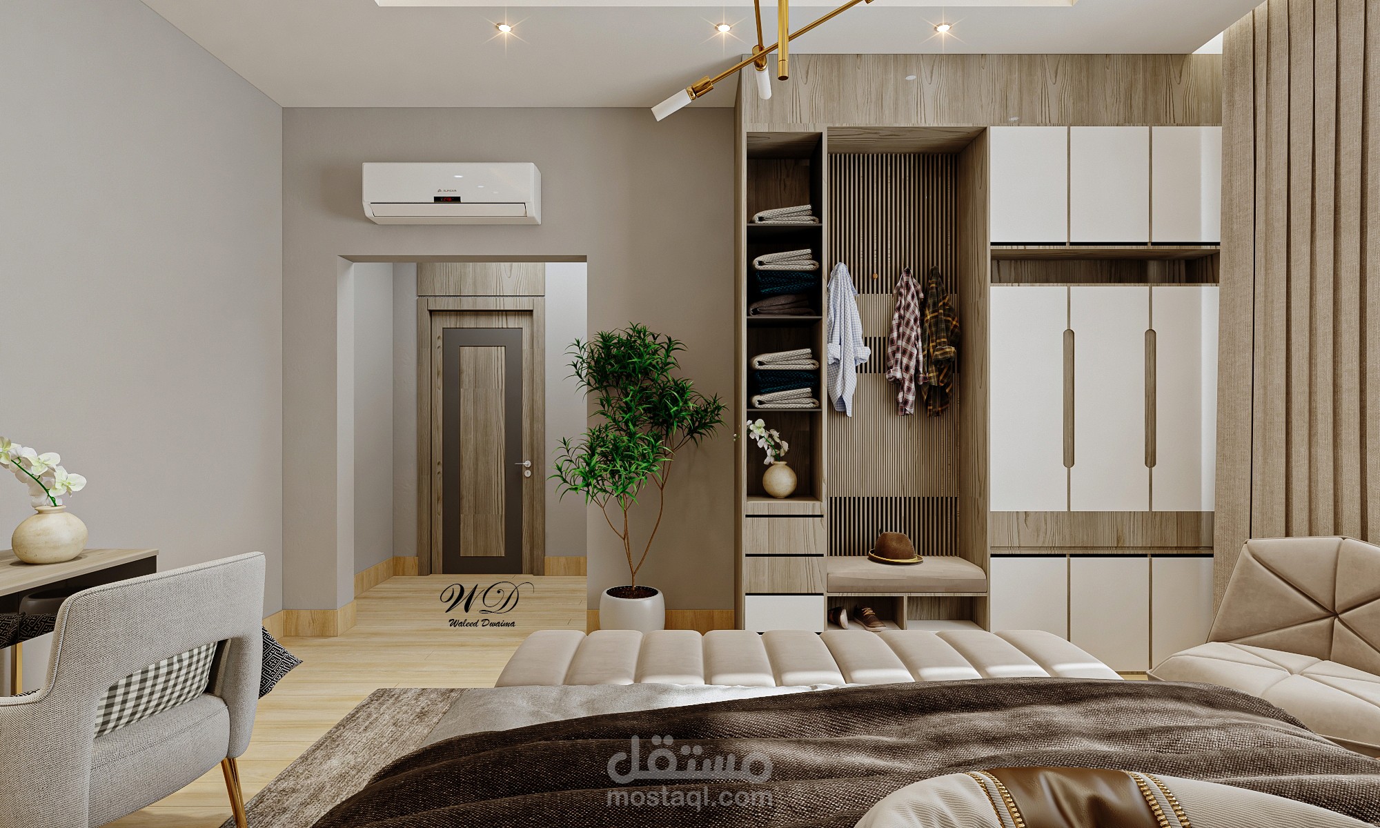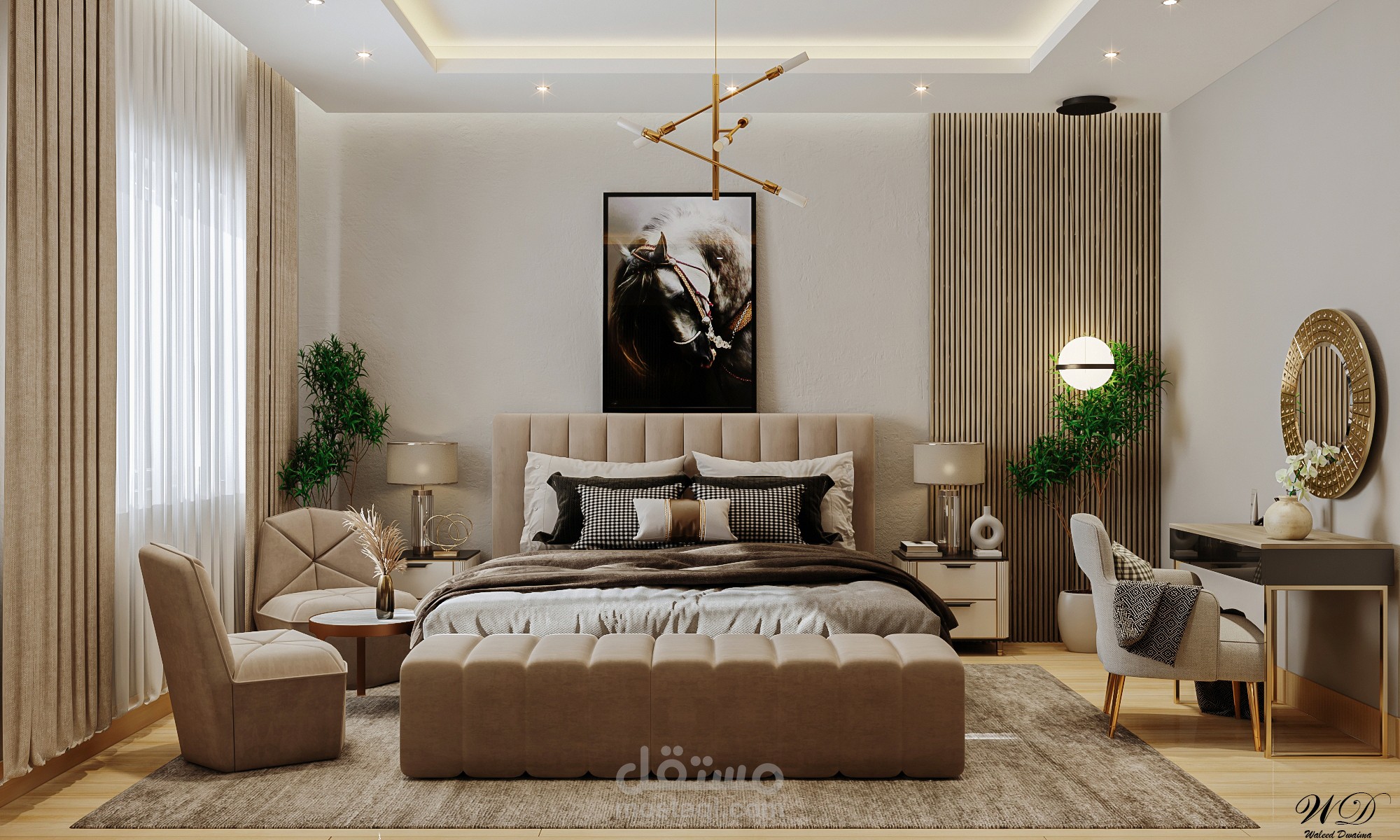 I've made used AutoCAD to make the 2d design then I've made the 3D Modeling using SketchUp. At the and I've exported it using V-Ray next and the last step is adding some effects using Photoshop.