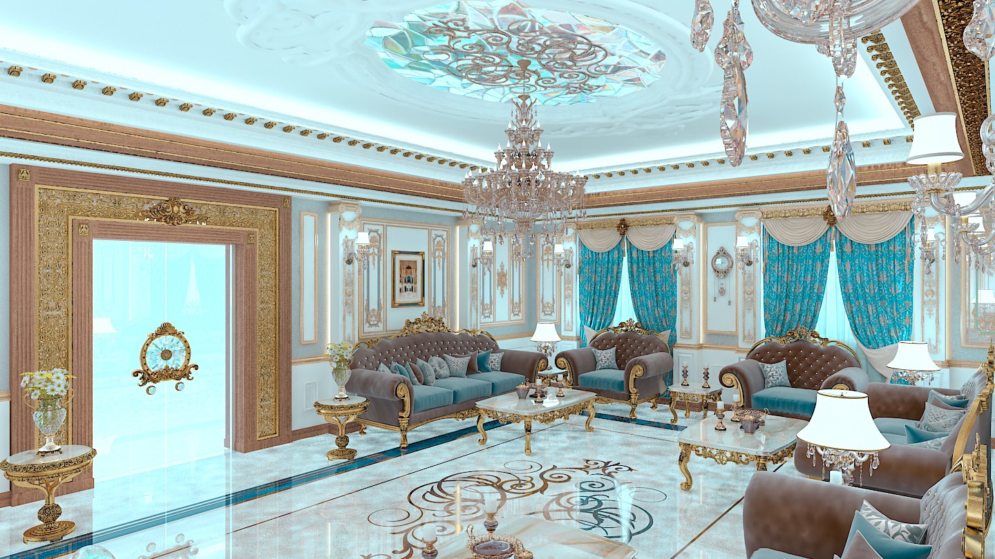 cielling gyp - floor marble - classic furniture - wood decoration - plaster wall frame