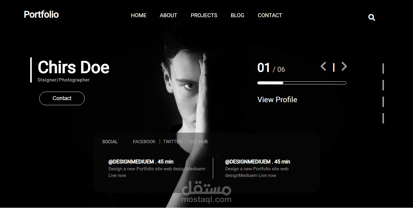 تحويل صفحة تصميم Portfolio من XD إلى HTML, CSS.