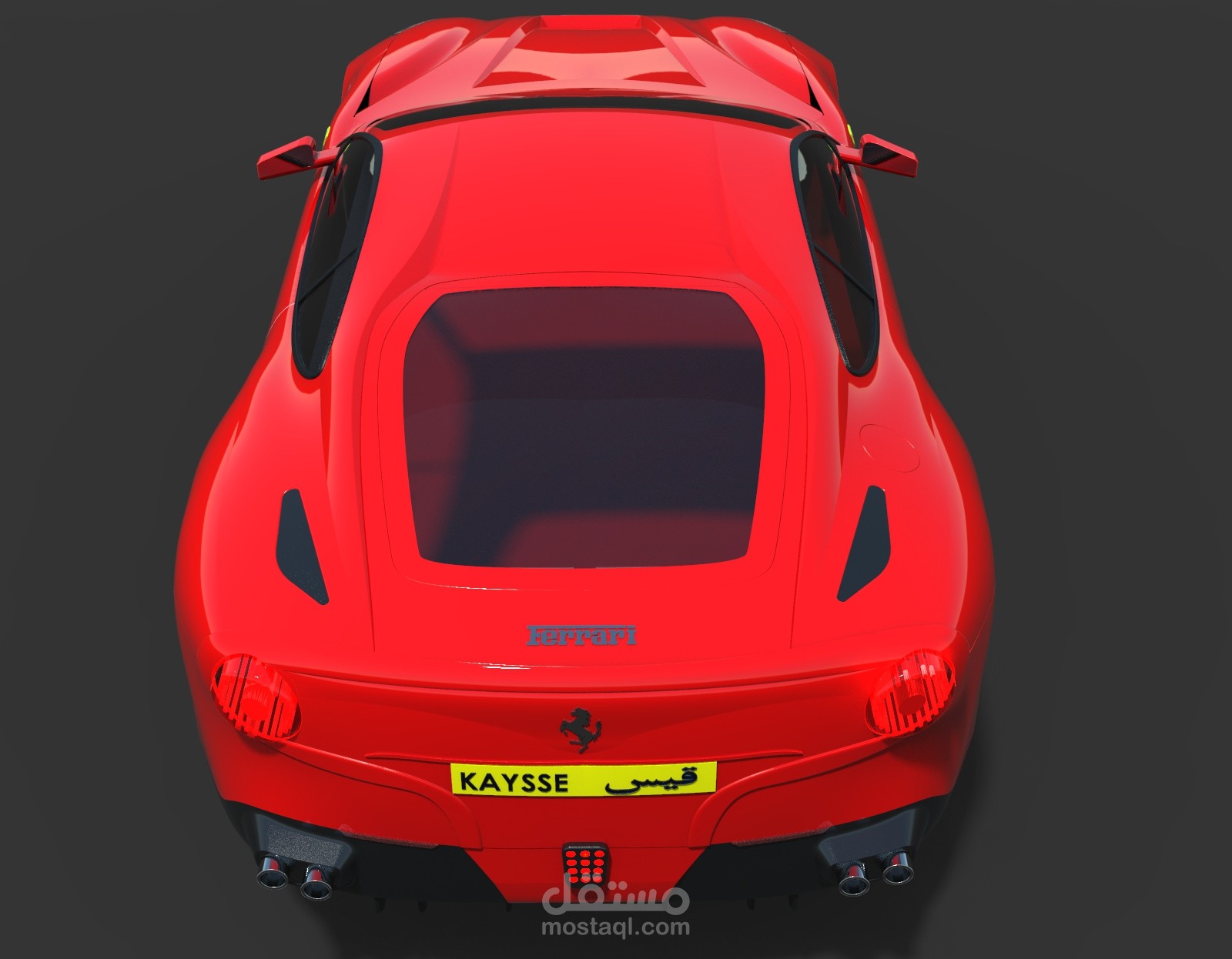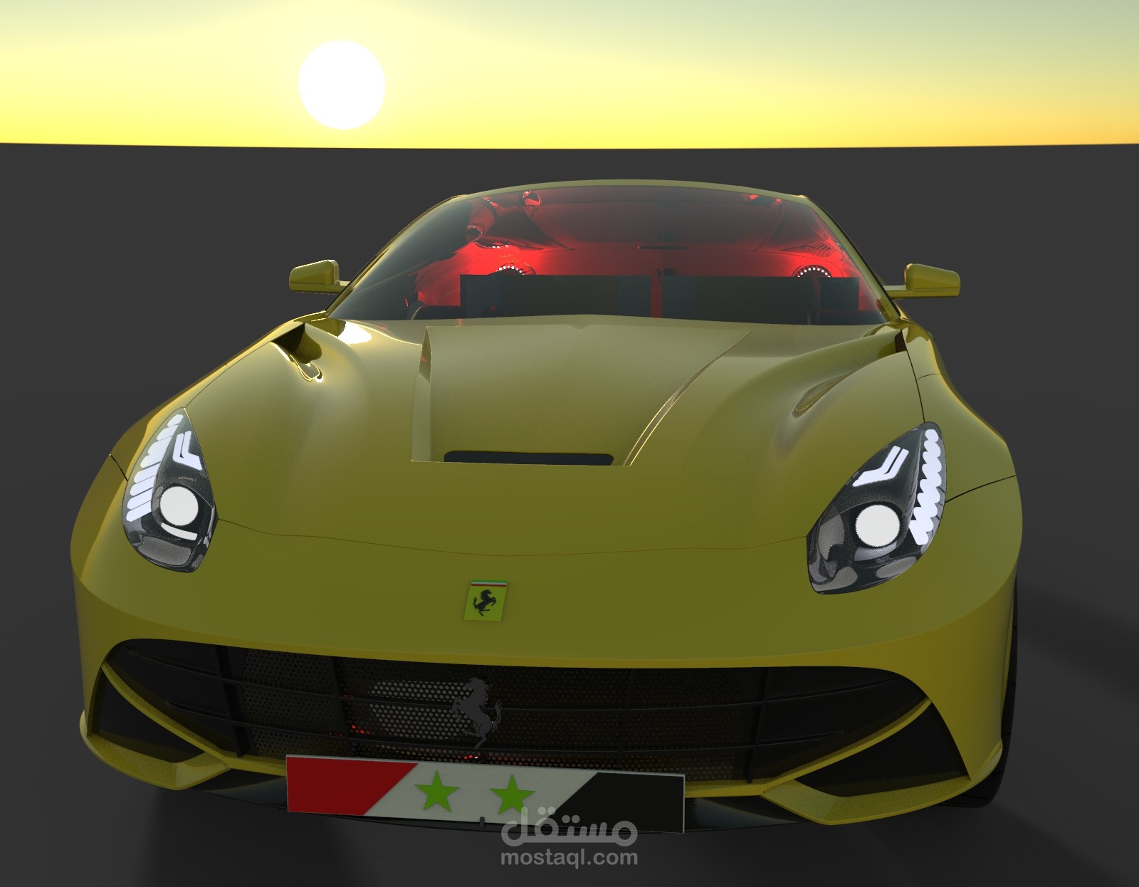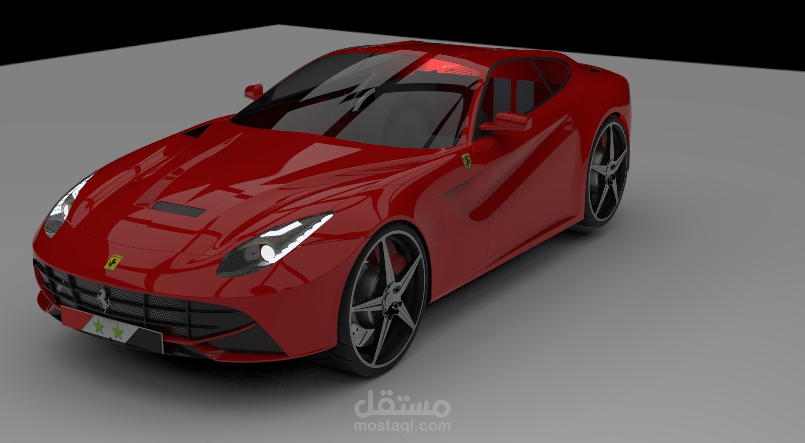 تصميم سيارة فيراري f12 بواسطة برنامج Solidworks مع بعض التعديلات الشخصية, والرندرة باستخدام برنامج Keyshot.