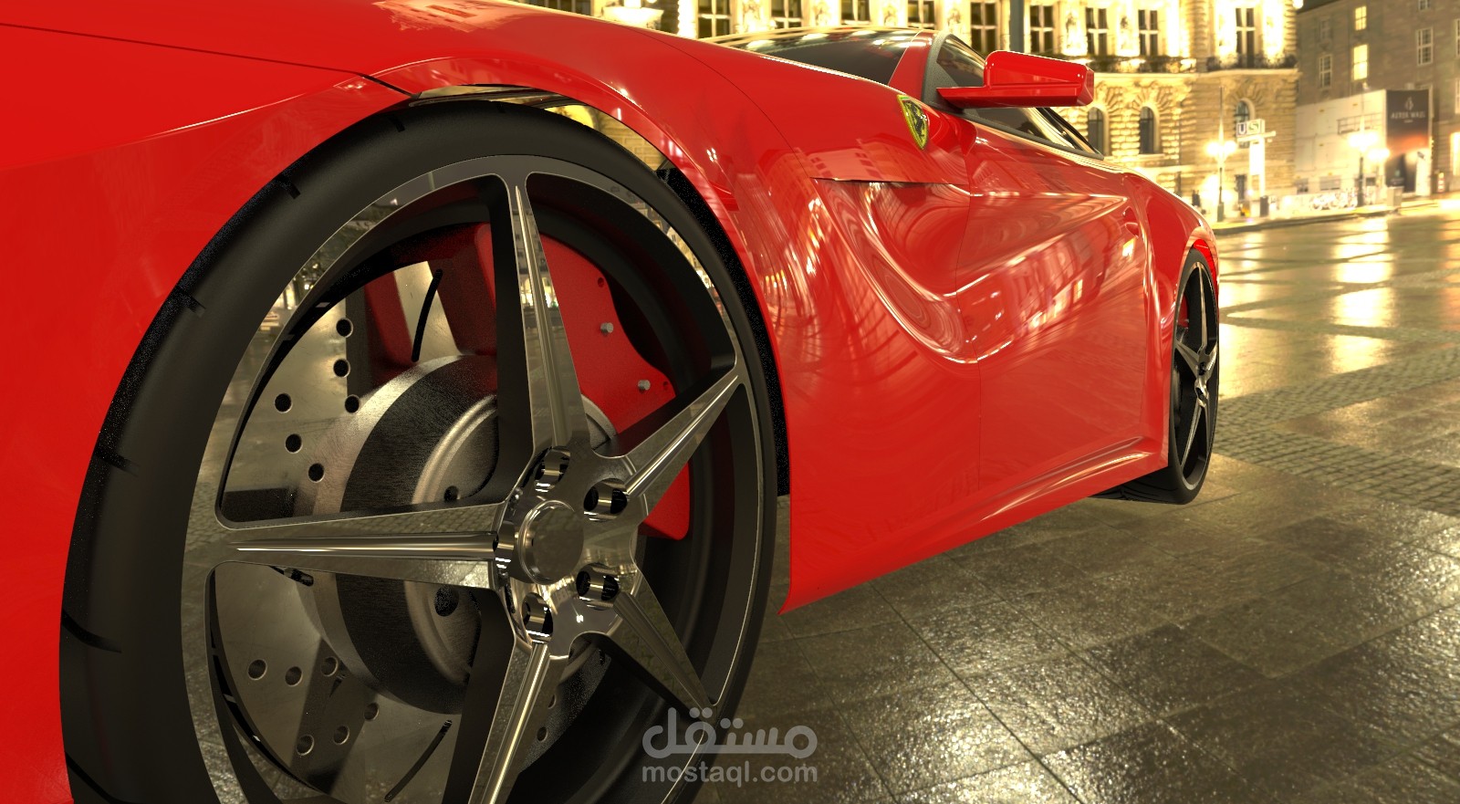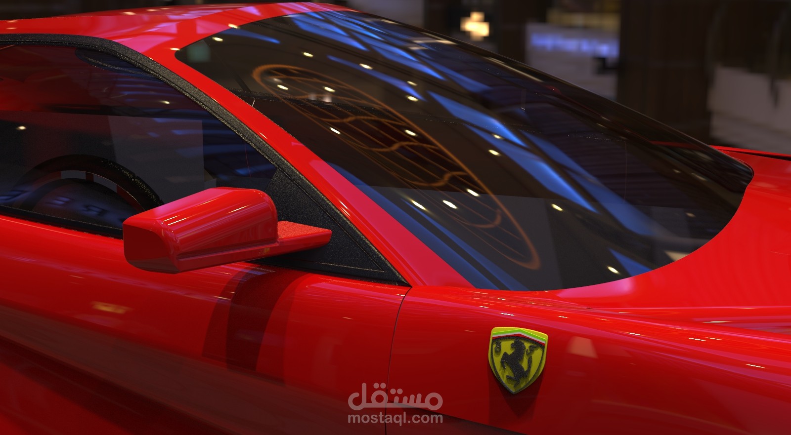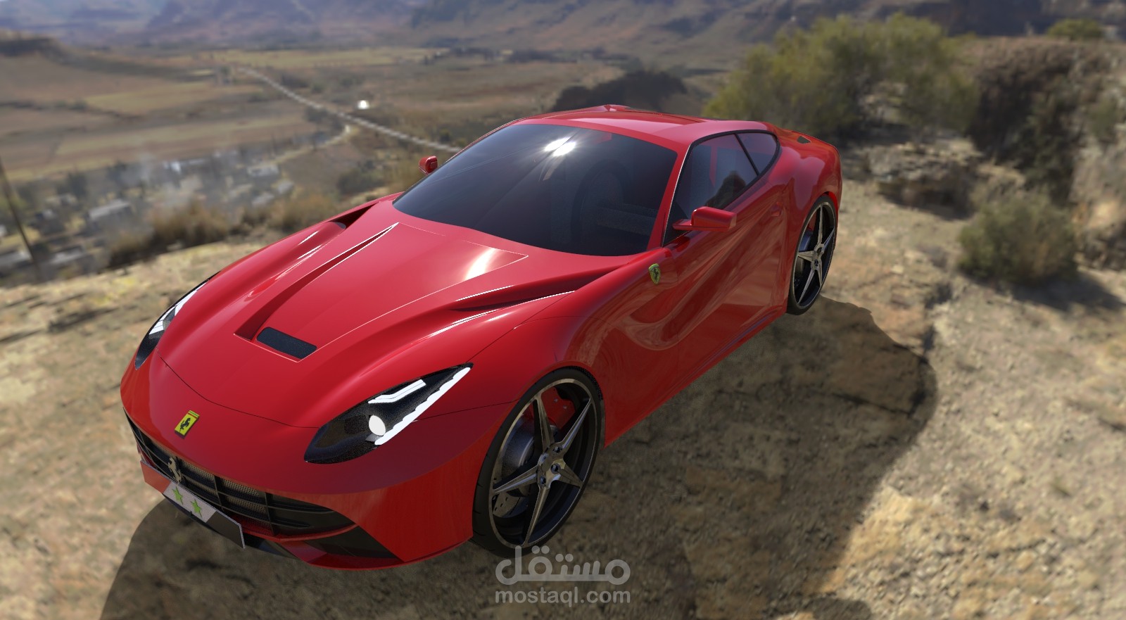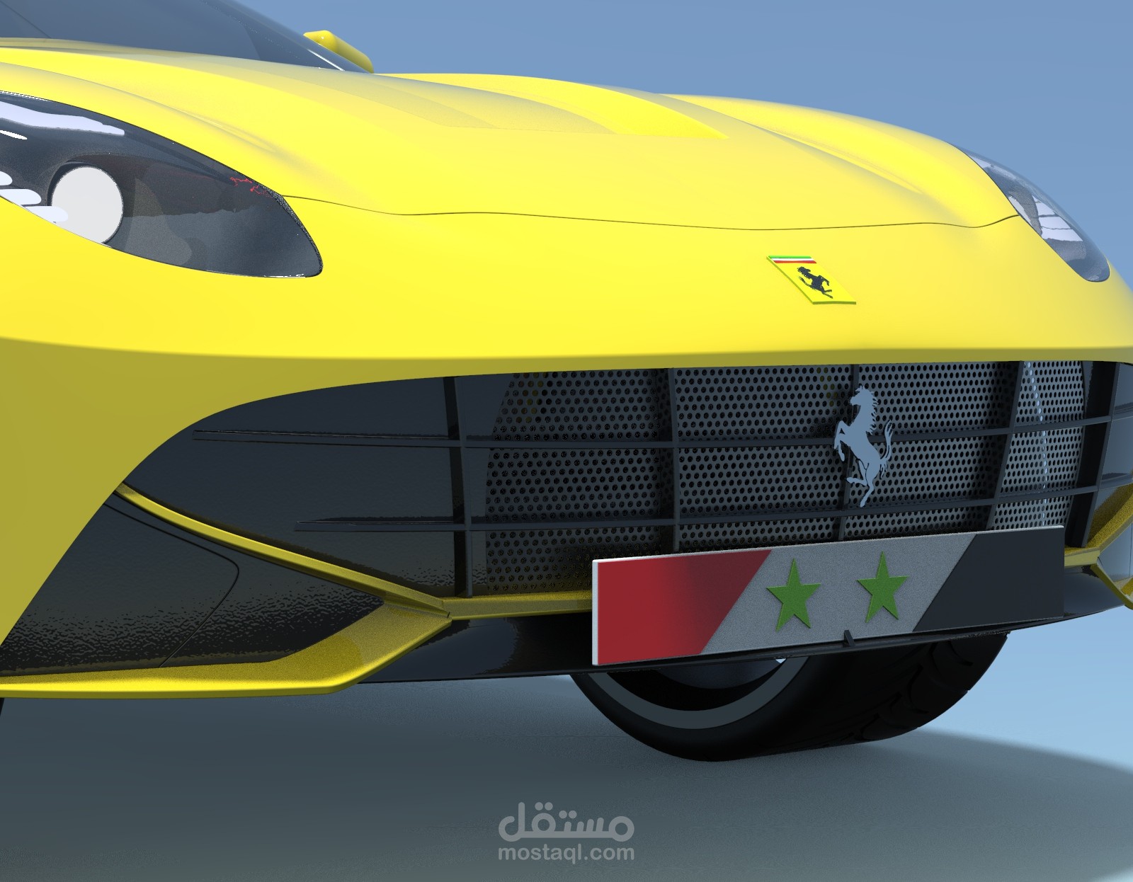 تصميم سيارة فيراري f12 بواسطة برنامج Solidworks مع بعض التعديلات الشخصية, والرندرة باستخدام برنامج Keyshot.