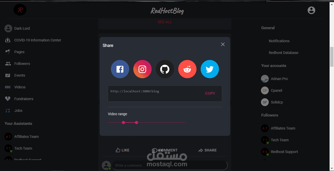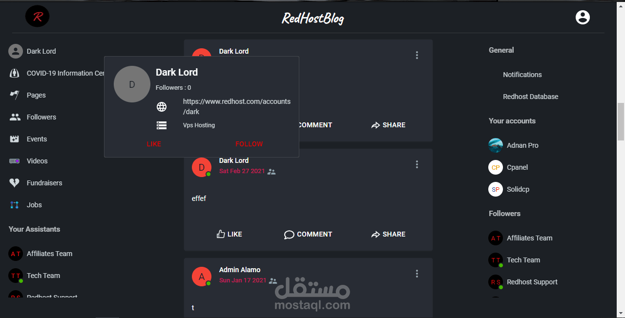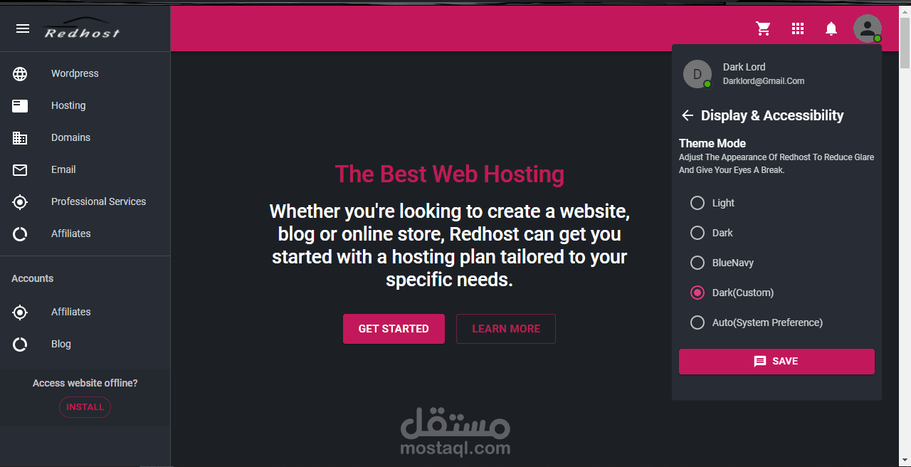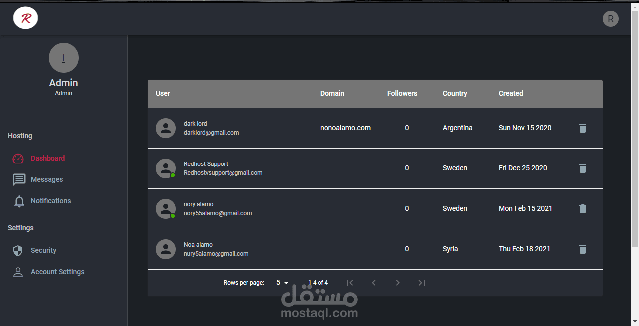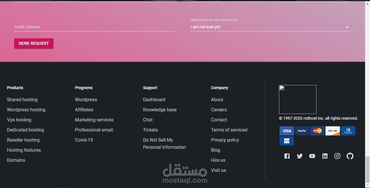 تتكون منصة redhost من 5 اقسام رئيسية هي :