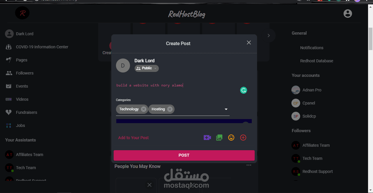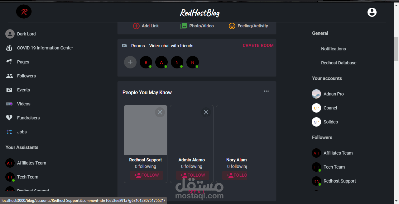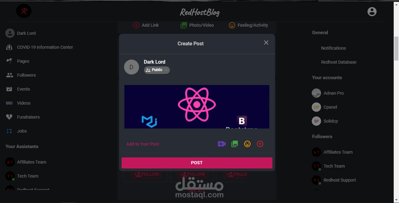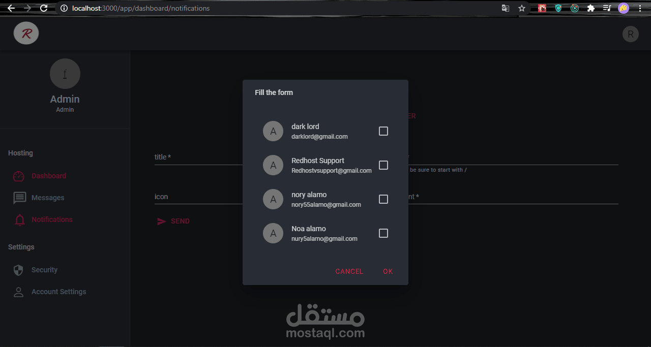 تتكون منصة redhost من 5 اقسام رئيسية هي :