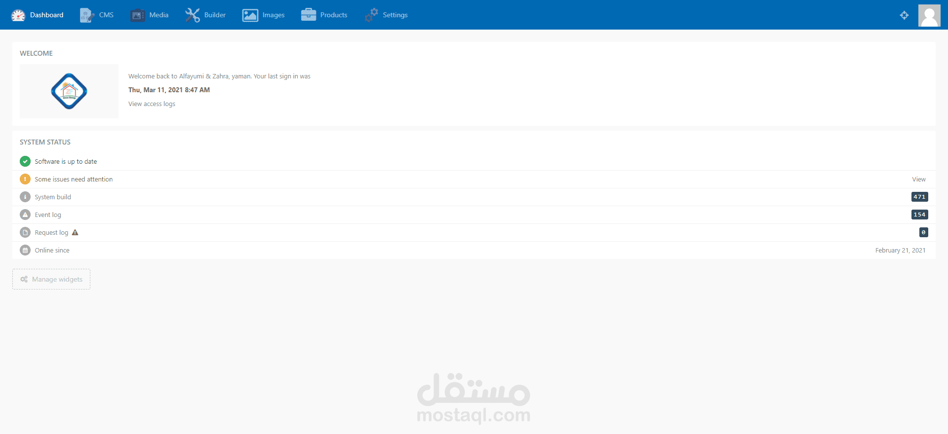 إعادة تصميم وبناء الموقع وإضافة لوحة تحكم لإضافة منتجات أعمال جديدة